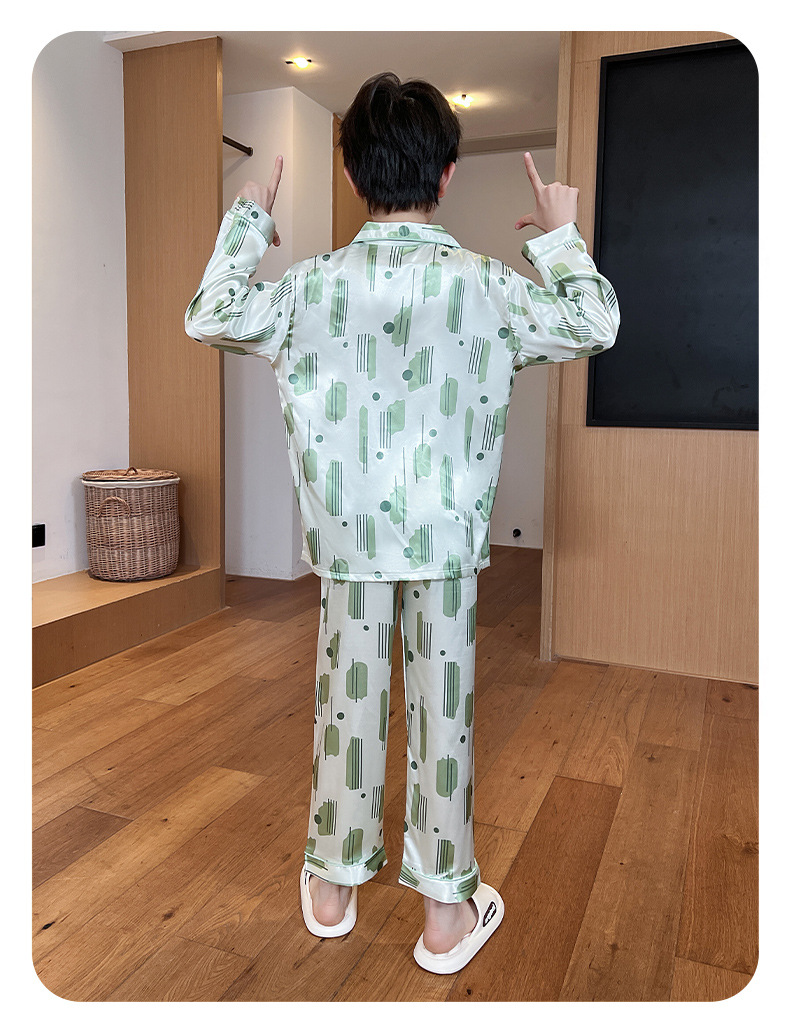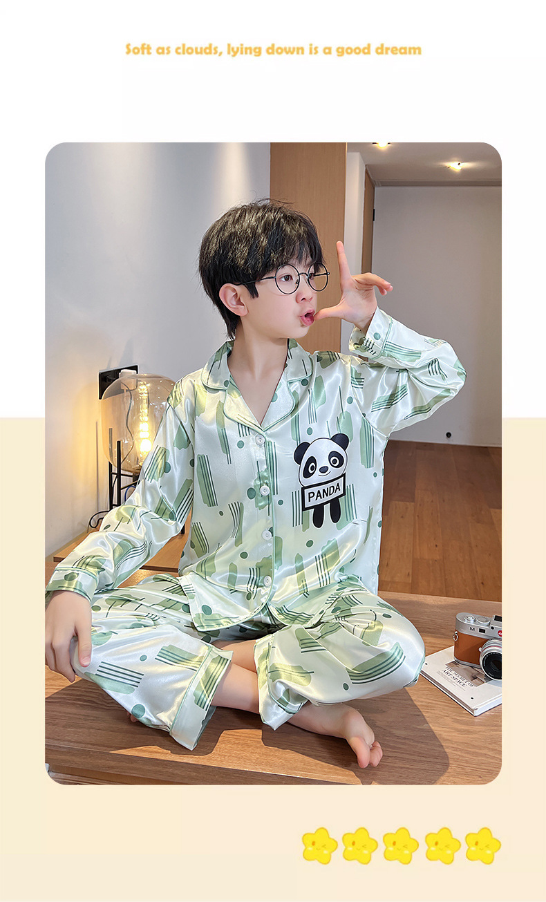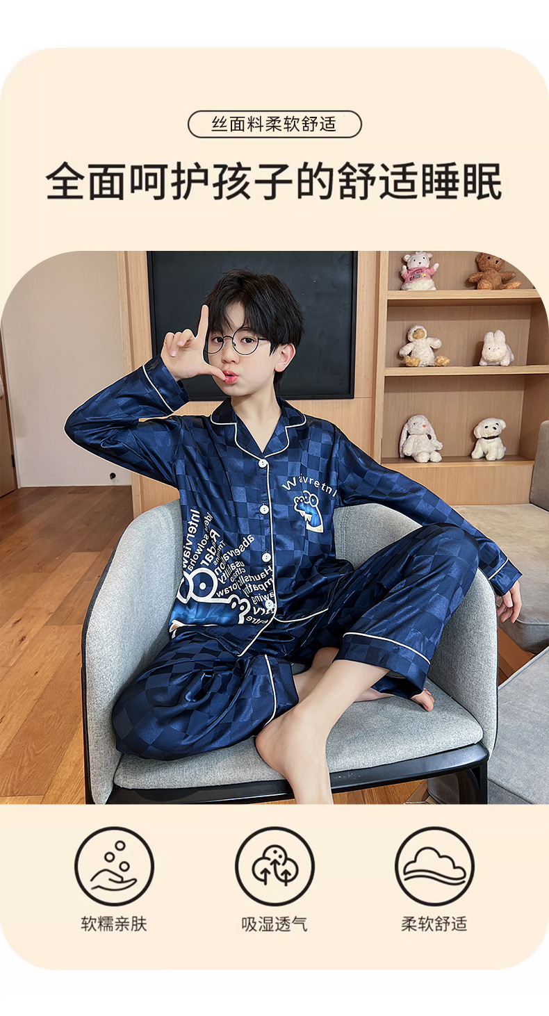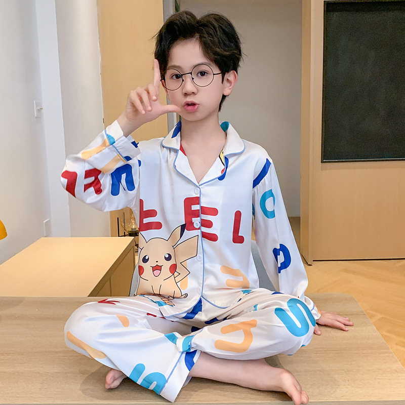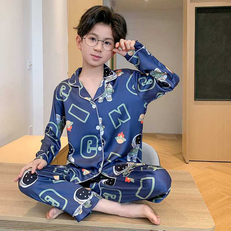 소년 잠옷 아이스 실크 봄과 가을 긴 소매 어린이 아기 홈 옷 십대 큰 어린이 만화 소년 여름 세트스토어 가기