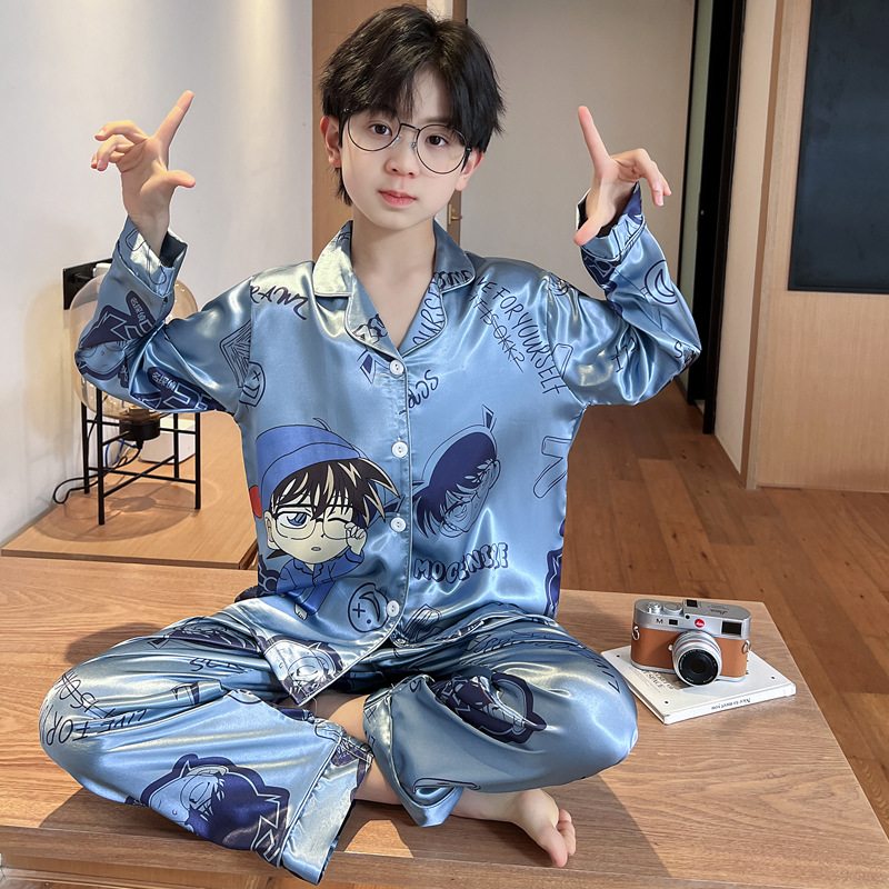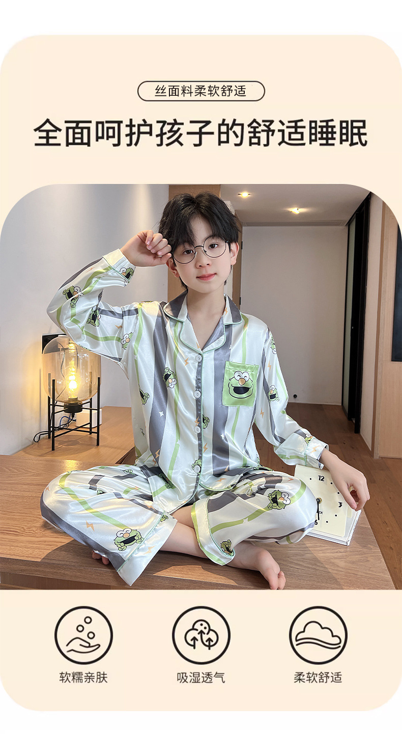 소년 잠옷 아이스 실크 봄과 가을 긴 소매 어린이 아기 홈 옷 십대 큰 어린이 만화 소년 여름 세트
