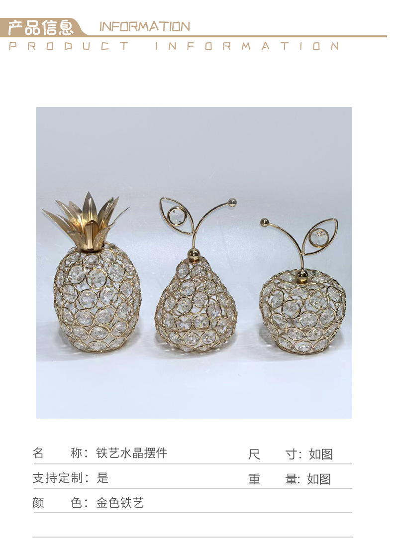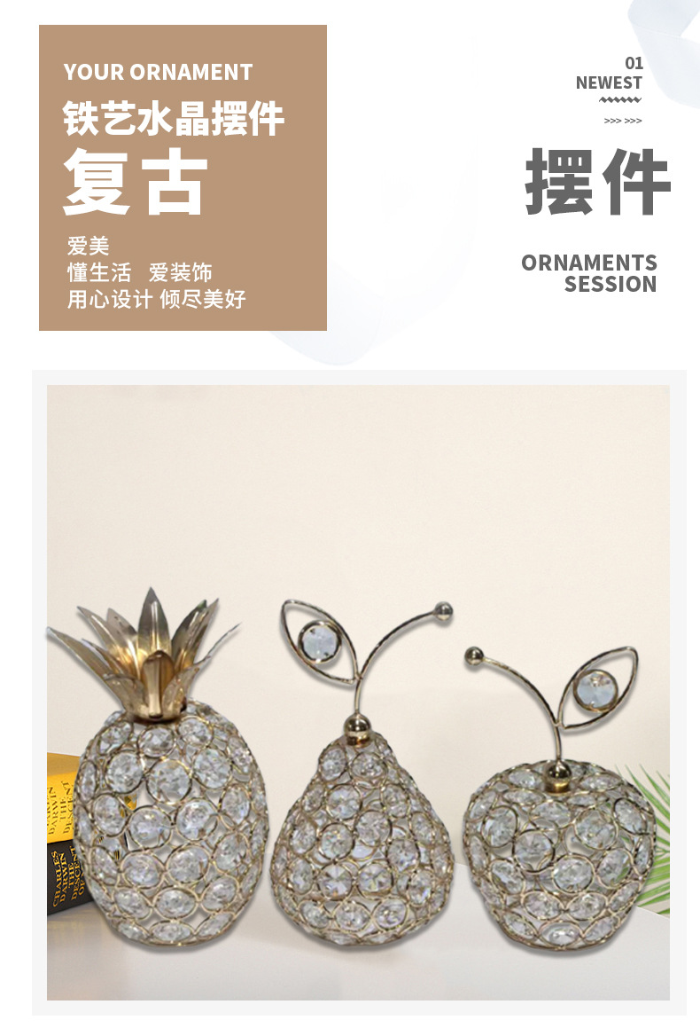 빈티지 철 과일 크리스탈 장식품 다양한 스타일 간단한 디자인 창조적 인 사과 파인애플 배 과일 장식스토어 가기