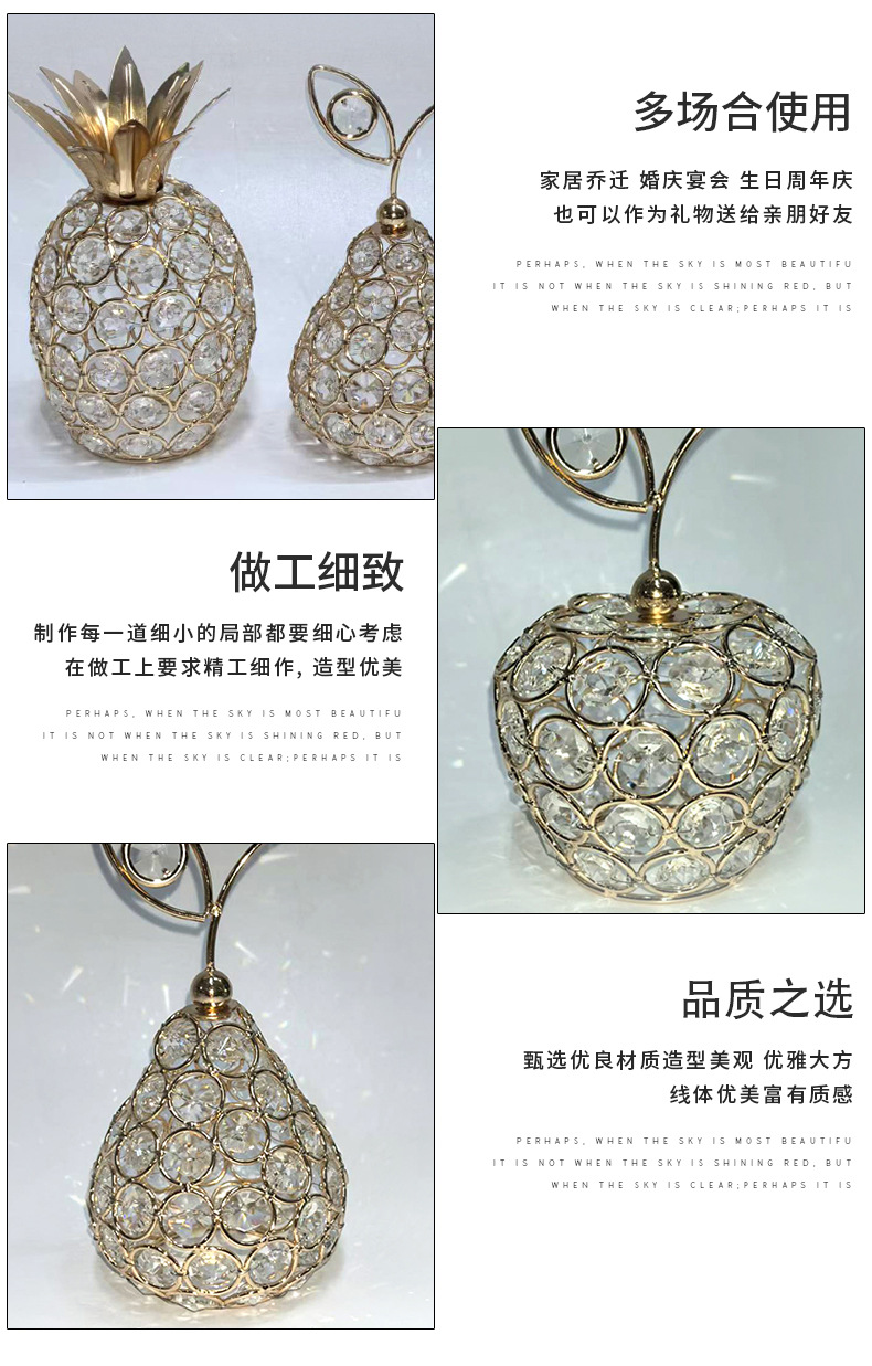 빈티지 철 과일 크리스탈 장식품 다양한 스타일 간단한 디자인 창조적 인 사과 파인애플 배 과일 장식