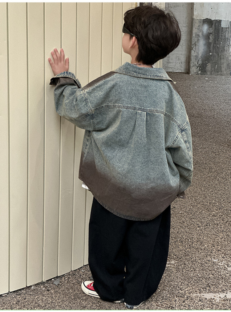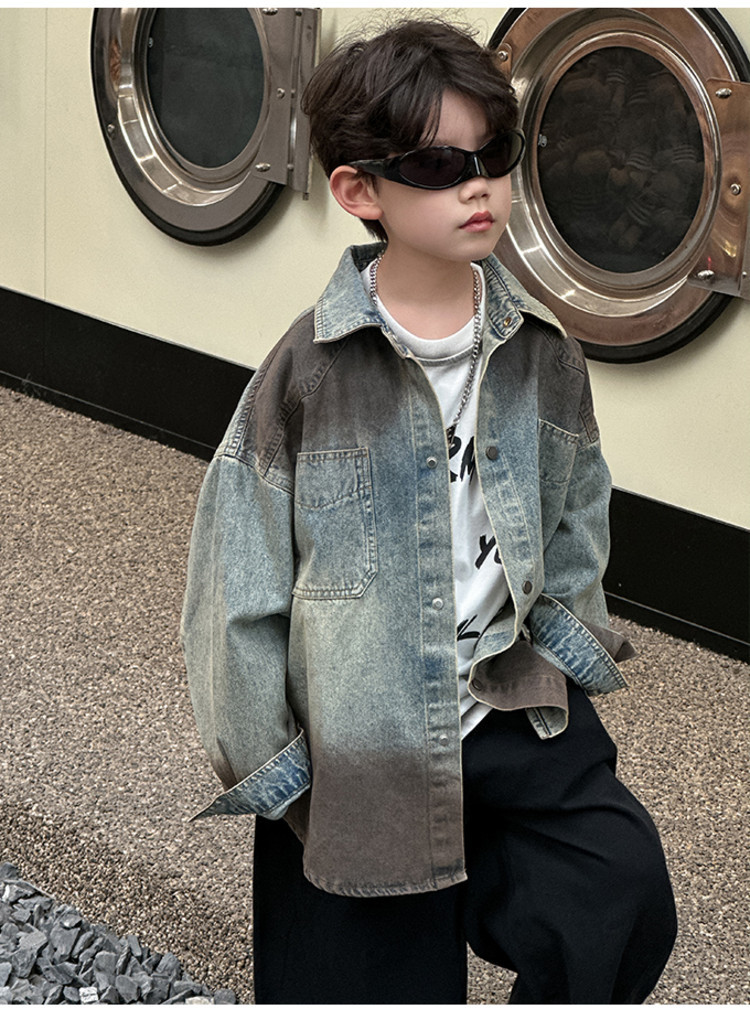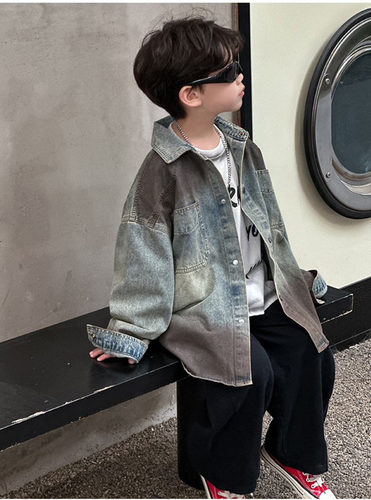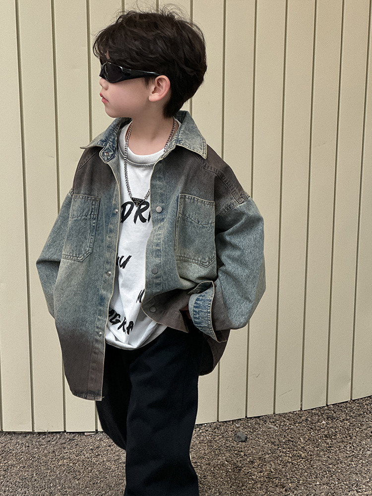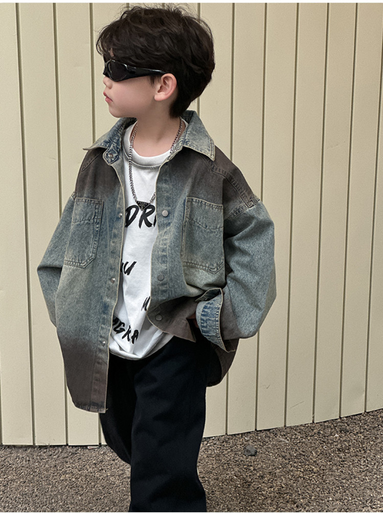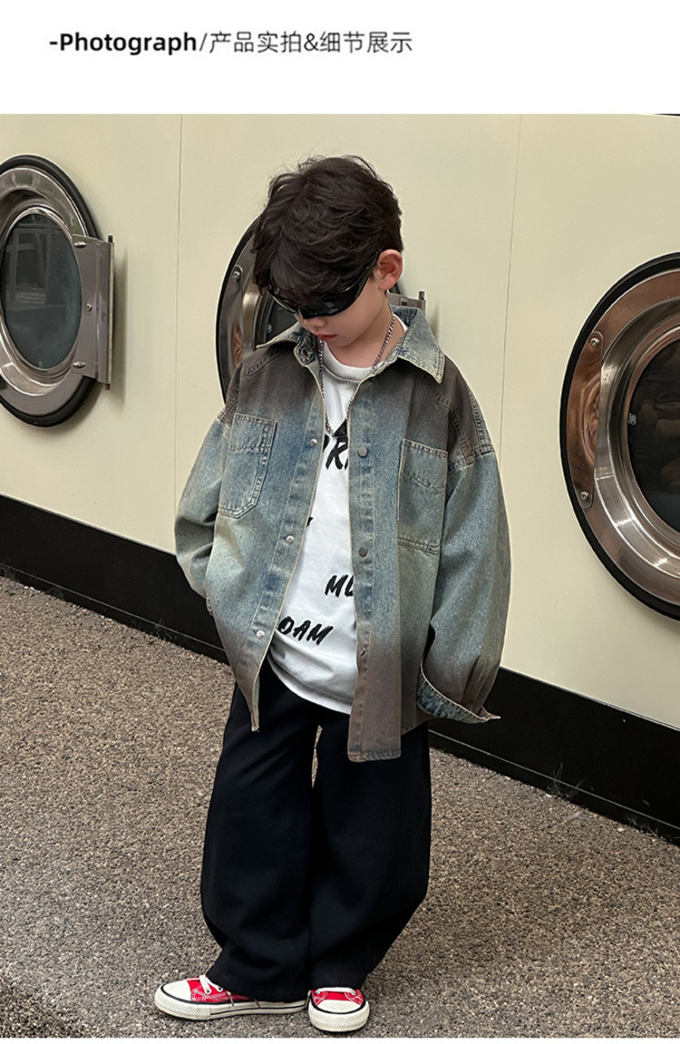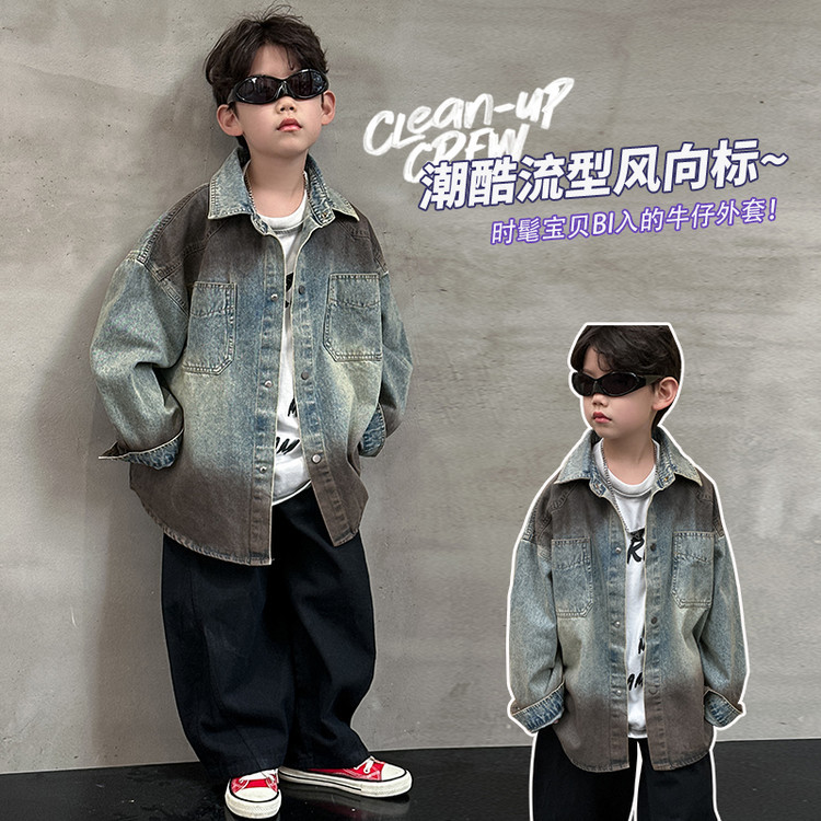 소년 데님 재킷 2025 봄 새로운 어린이 한국 스타일 서양식 탑 중 · 대형 어린이 지퍼 셔츠 레트로 재킷스토어 가기