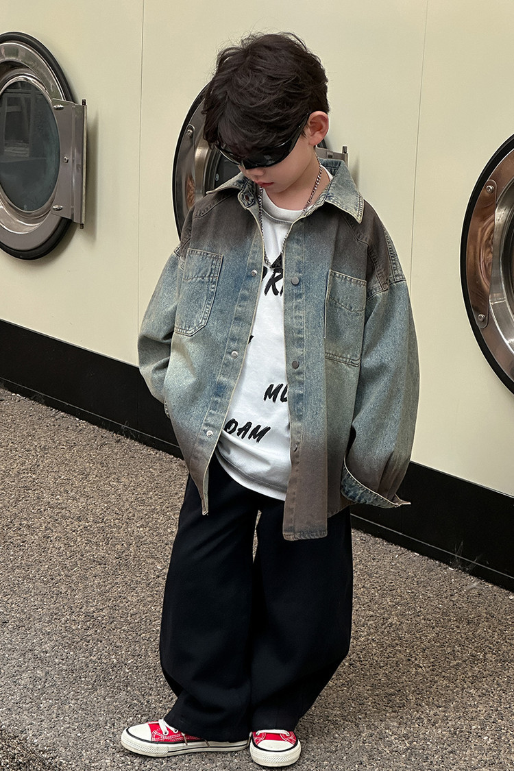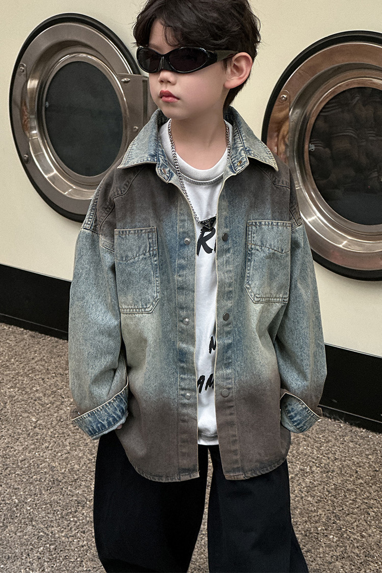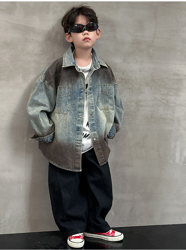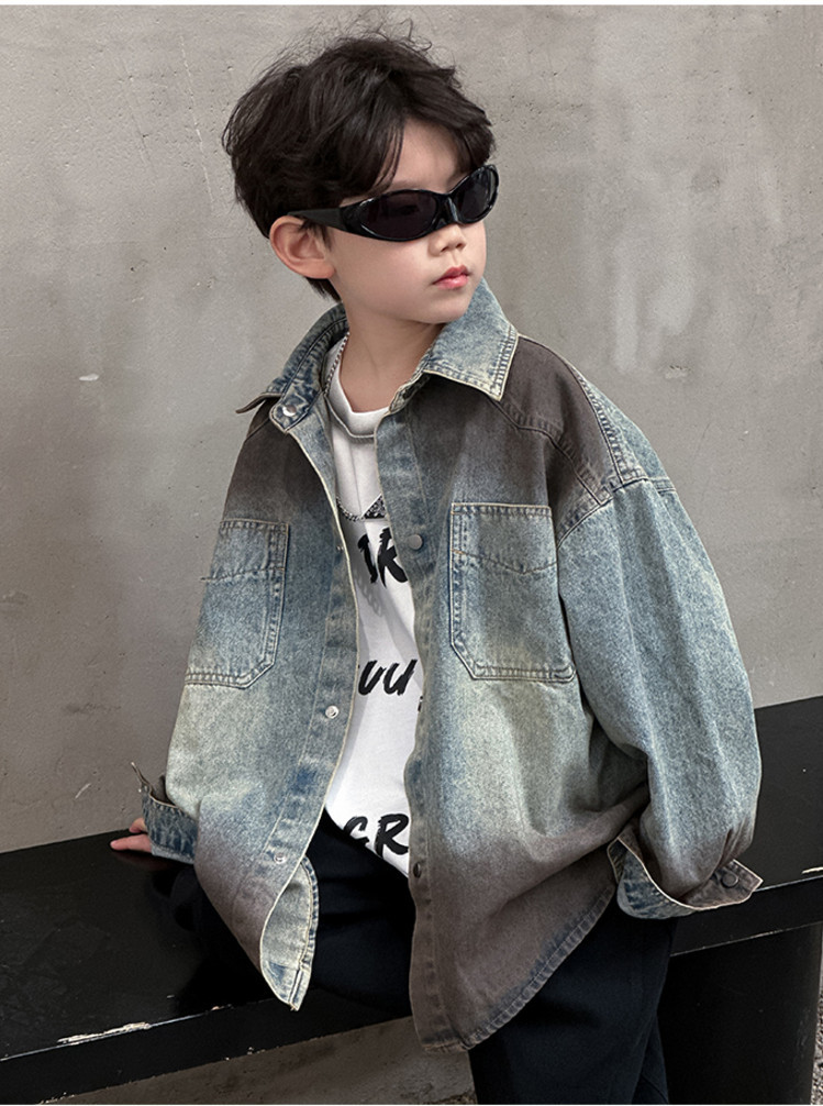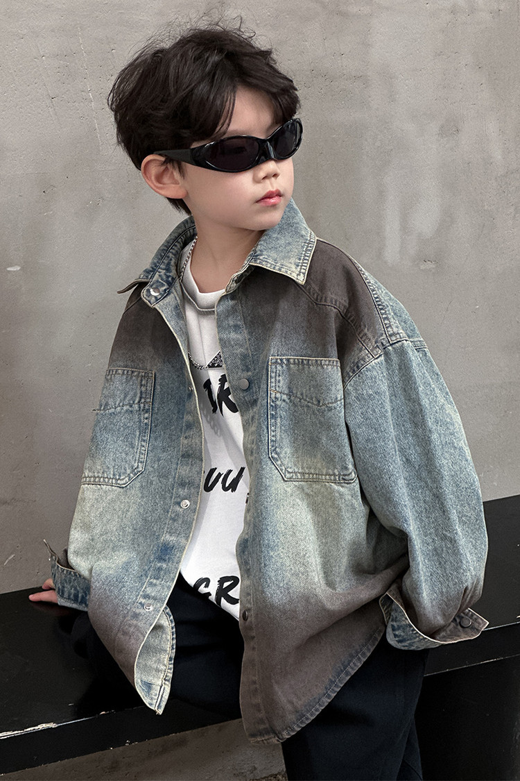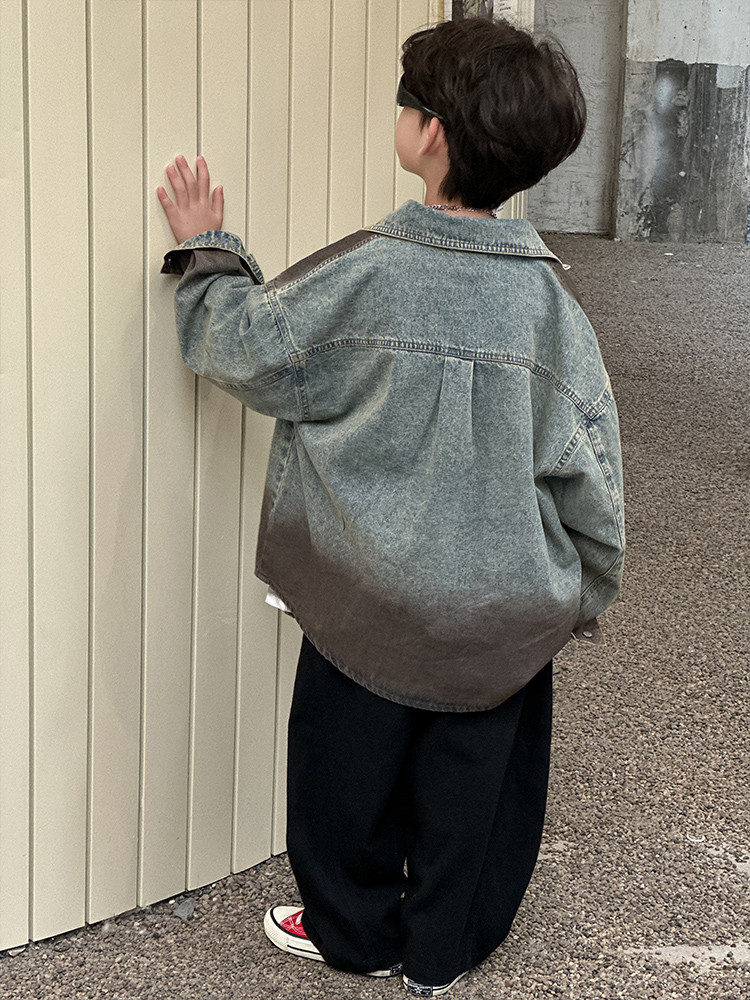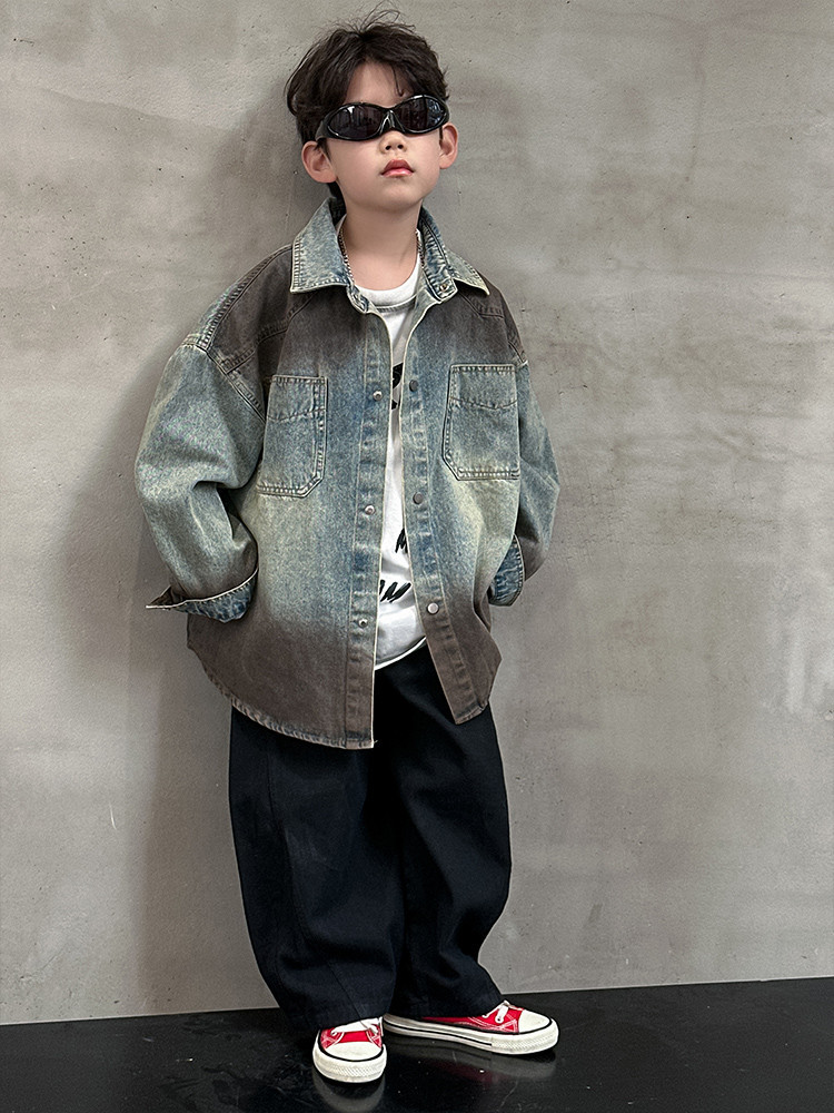 소년 데님 재킷 2025 봄 새로운 어린이 한국 스타일 서양식 탑 중 · 대형 어린이 지퍼 셔츠 레트로 재킷스토어 가기