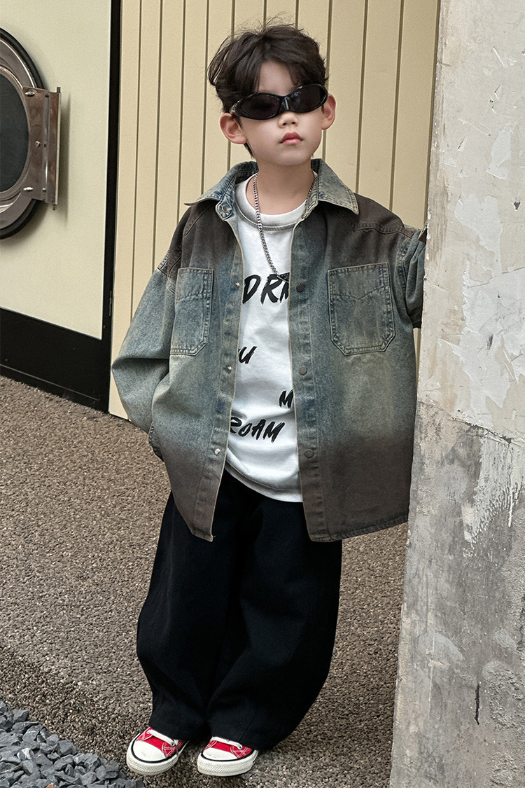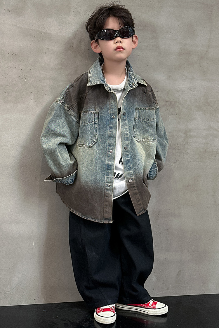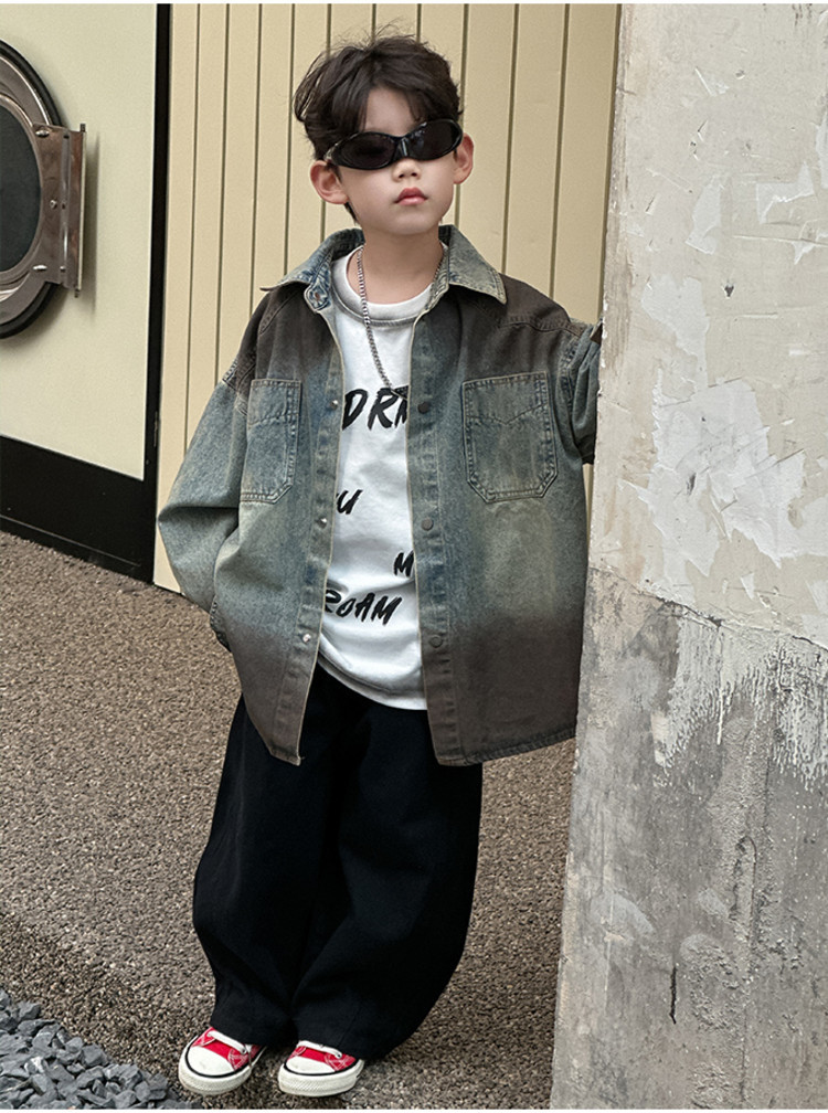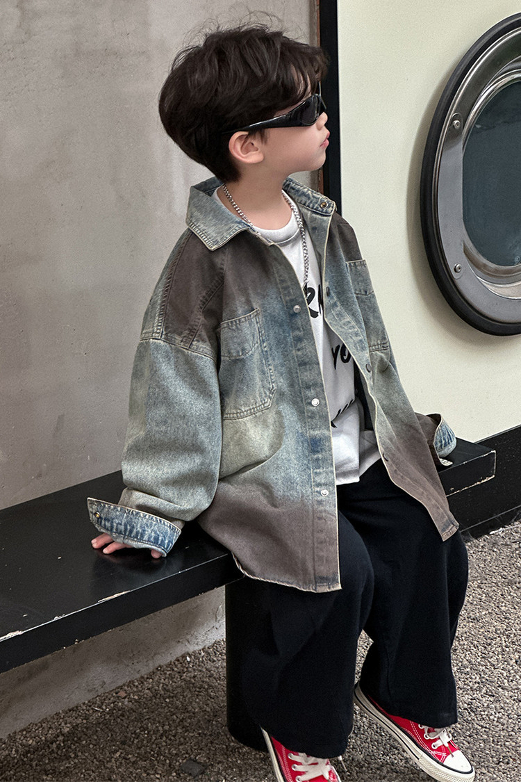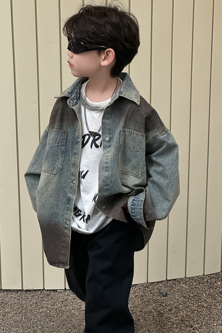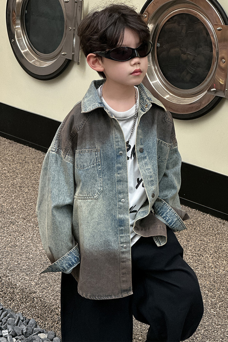 소년 데님 재킷 2025 봄 새로운 어린이 한국 스타일 서양식 탑 중 · 대형 어린이 지퍼 셔츠 레트로 재킷스토어 가기