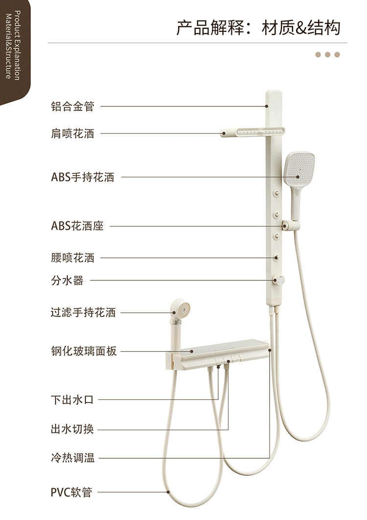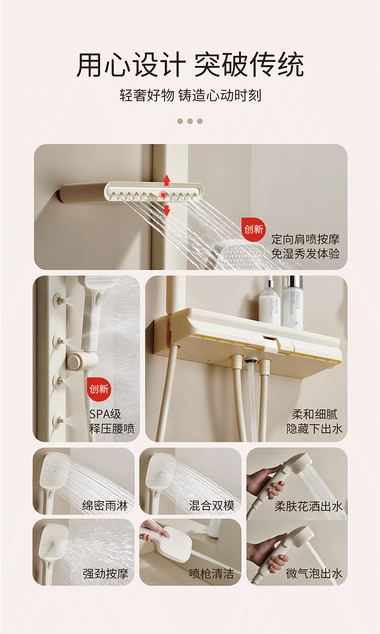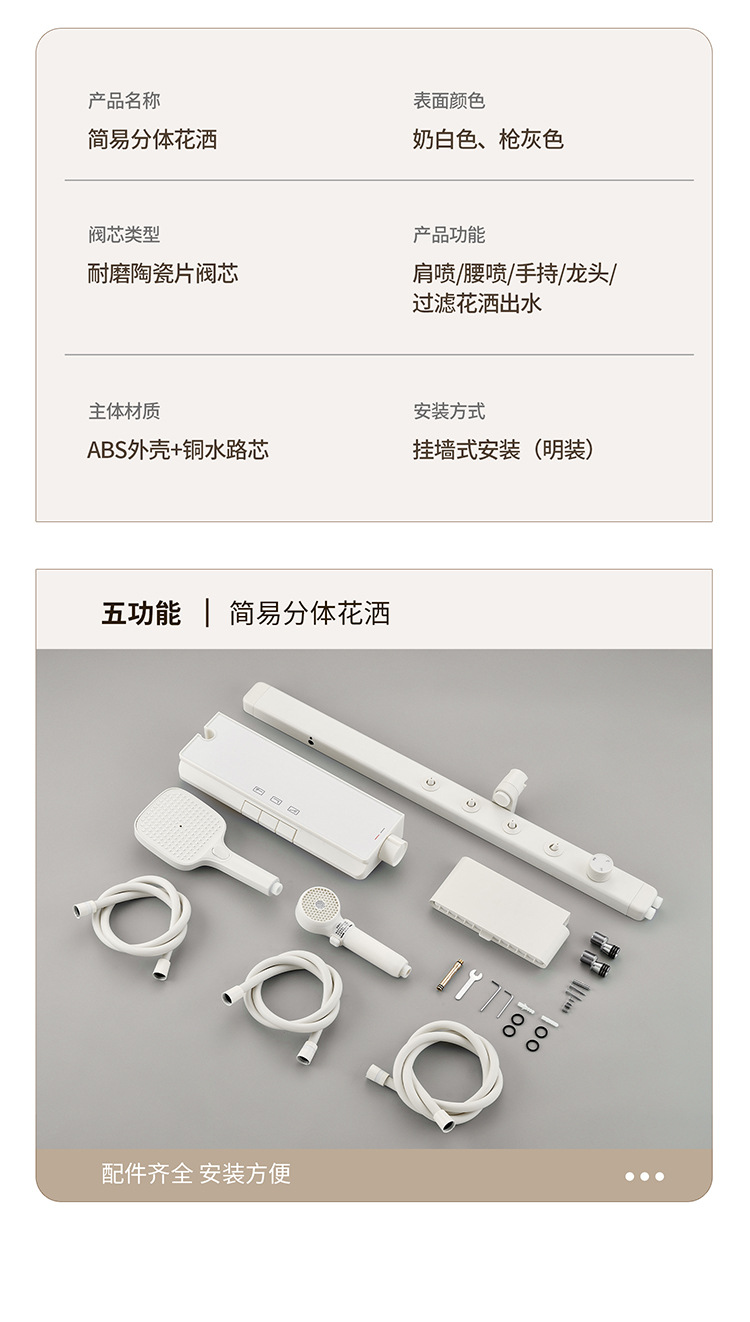 • [크림화이트] 5가지 기능 숄더 스프레이/백 스프레이 수납 샤워기