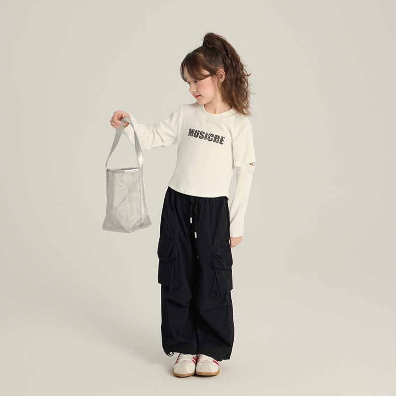 [특가 클리어런스] 여아용 한국 스타일 레터링 배색 페이크 투피스 긴팔 티셔츠 캐주얼 다용도 슬림핏 탑 트렌디