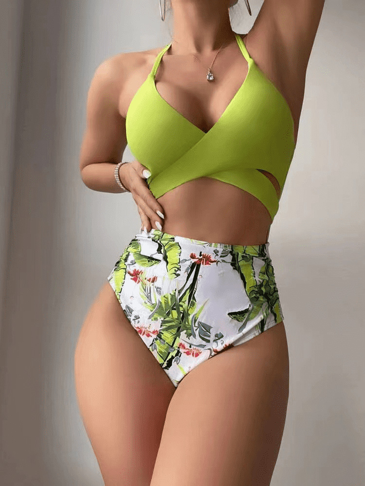 유럽 및 미국 여성 수집 비키니 랩 넥 붕대 수영복 2 피스 수영복 전용 국경 전용
