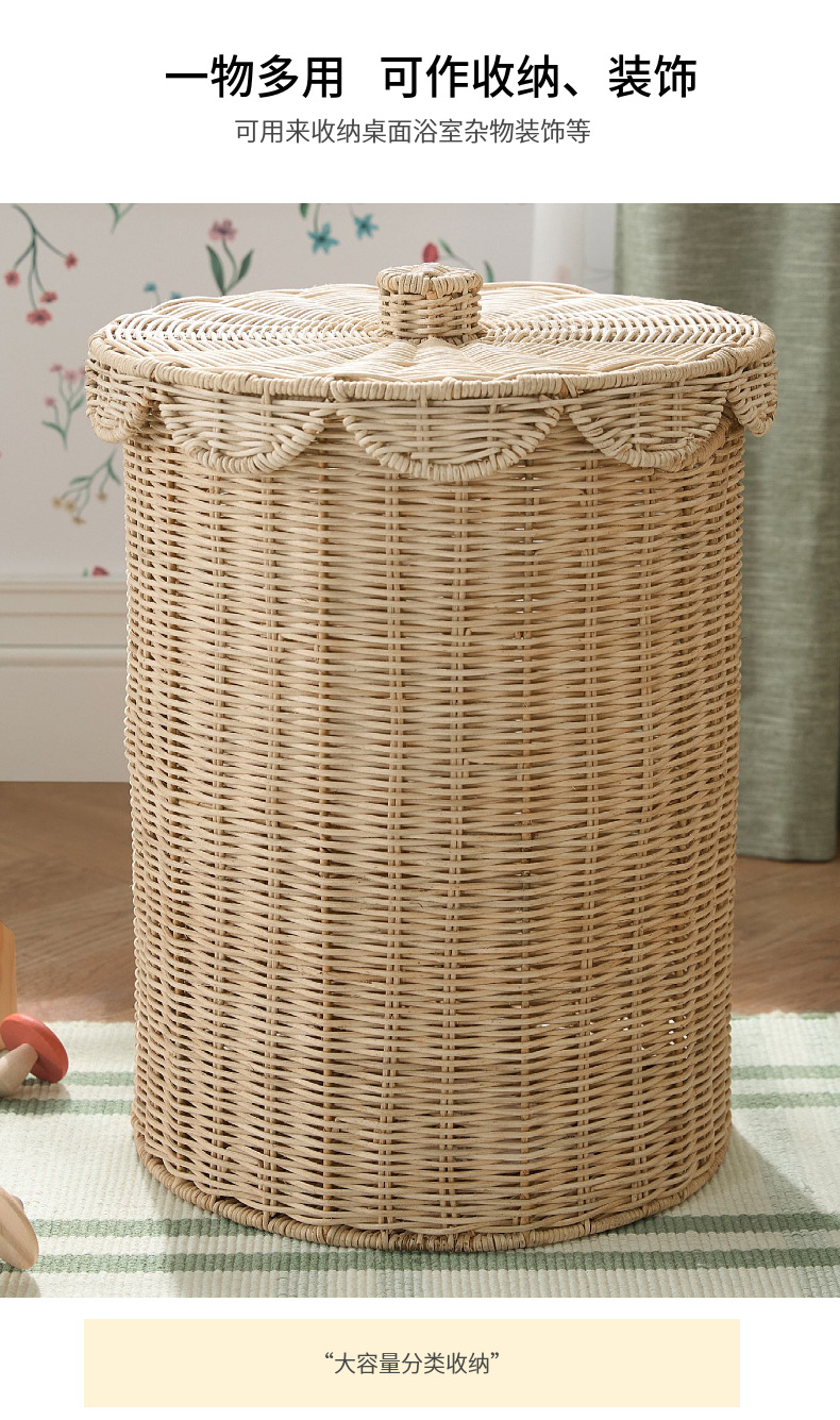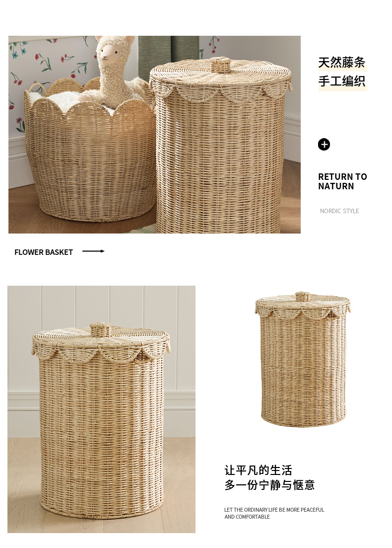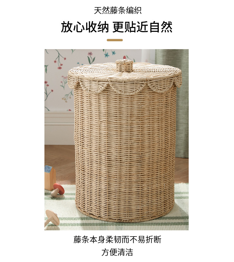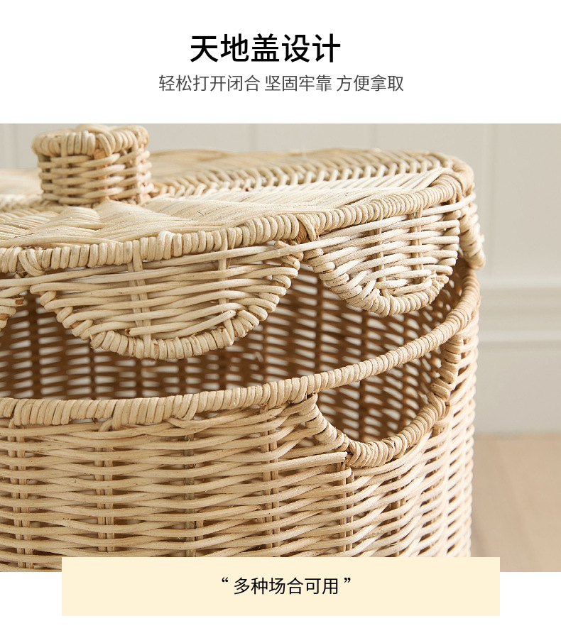 뚜껑이있는 실제 등나무 짠 보관 바구니 가정용 대용량 더러운 옷 바구니 잡화 간식 주방 물결 모양 덮개 보관 바구니