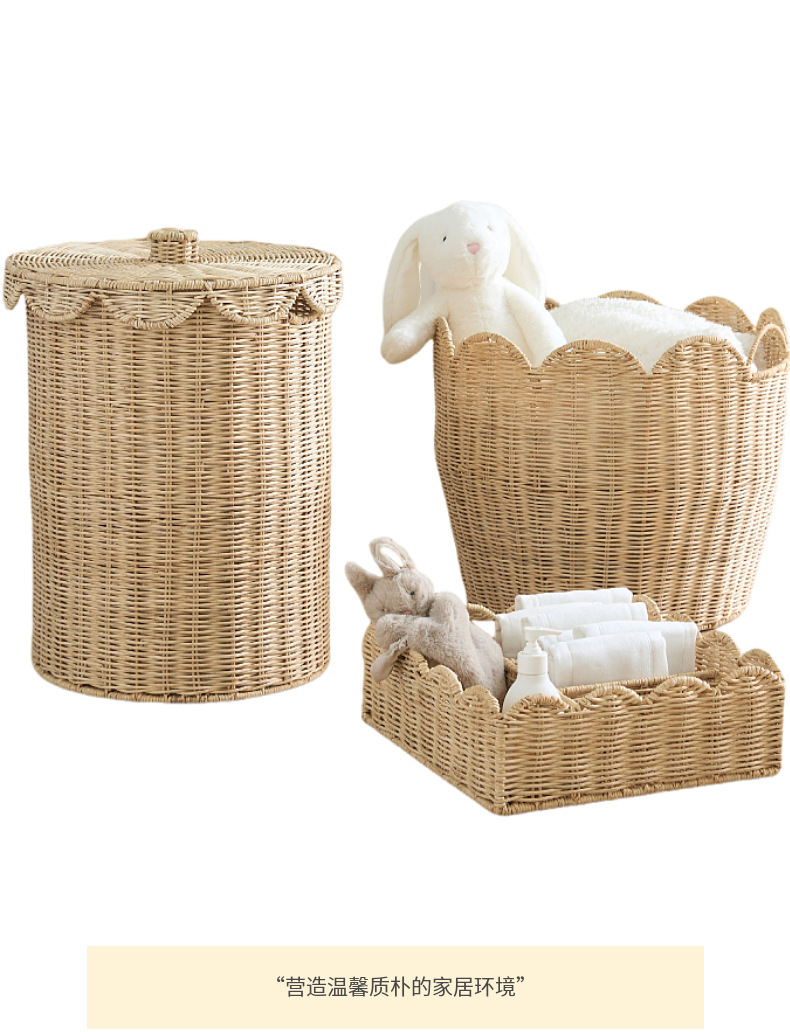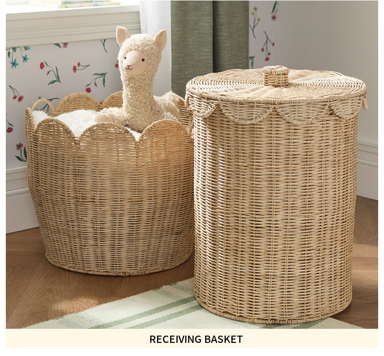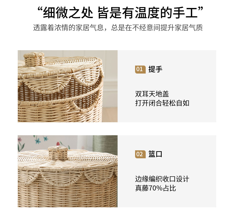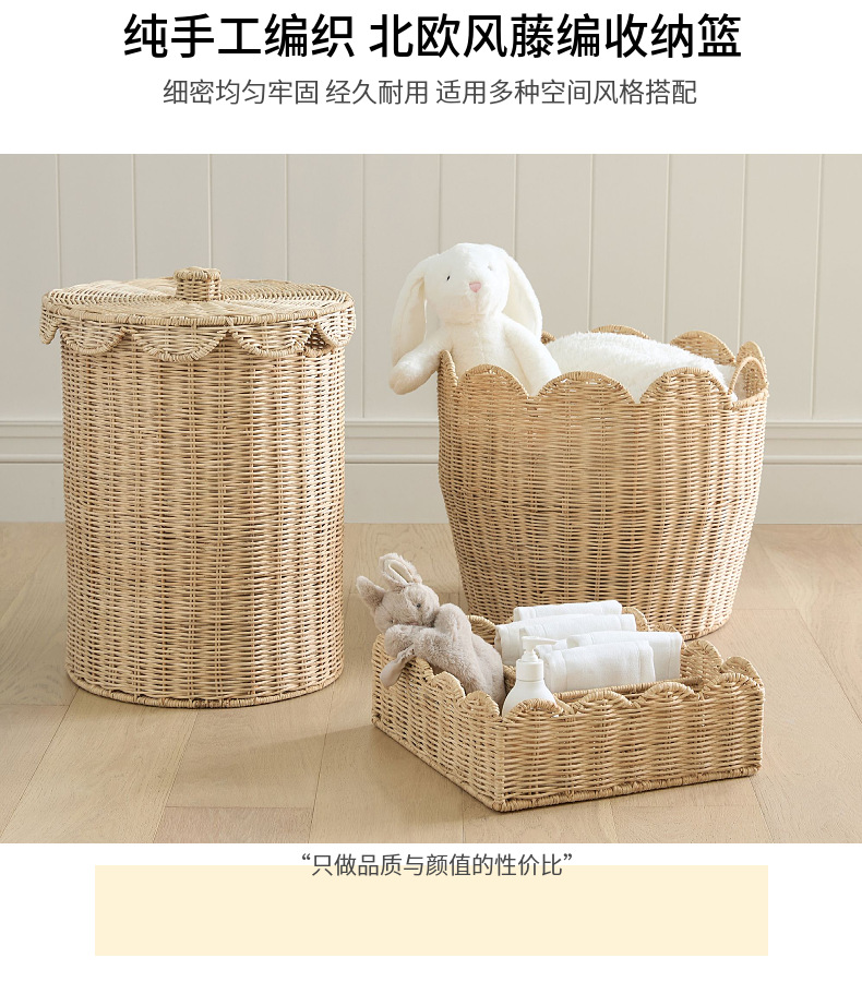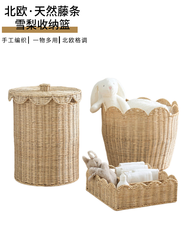 뚜껑이있는 실제 등나무 짠 보관 바구니 가정용 대용량 더러운 옷 바구니 잡화 간식 주방 물결 모양 덮개 보관 바구니