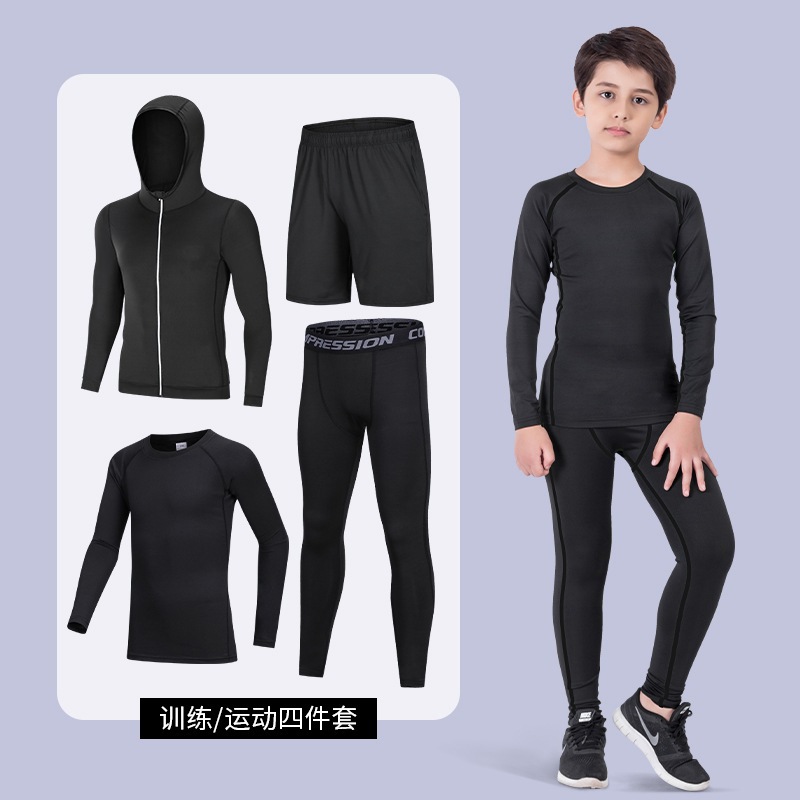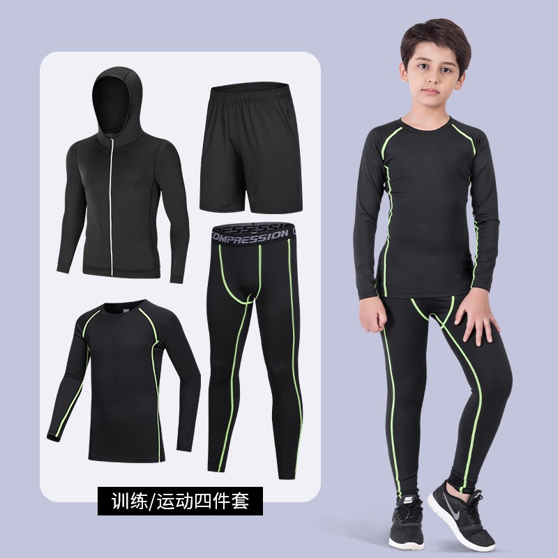 어린이 꽉 바지 소년 레깅스 달리기 훈련 옷 농구 축구 스포츠 세트 빠른 건조 옷 피트니스 옷