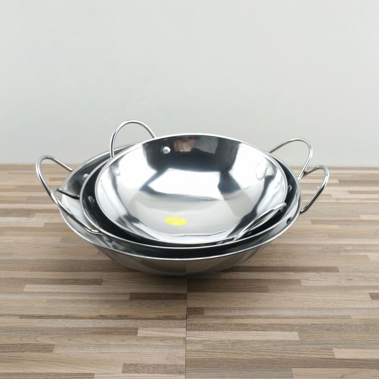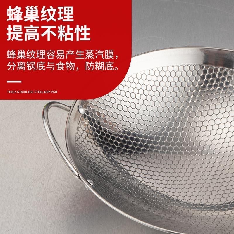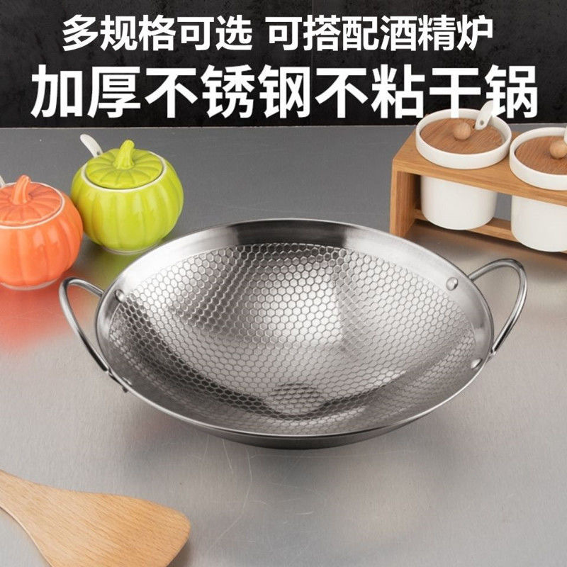 두꺼운 스테인레스 스틸 드라이 팬, 양쪽 귀가 있는 바 냄비, 상업용 소형 냄비, 알코올 스토브, 냄비, 둥근 바닥 냄비
