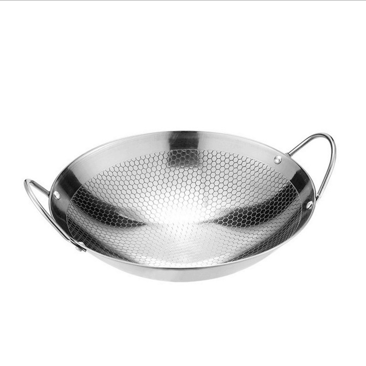두꺼운 스테인레스 스틸 드라이 팬, 양쪽 귀가 있는 바 냄비, 상업용 소형 냄비, 알코올 스토브, 냄비, 둥근 바닥 냄비스토어 가기