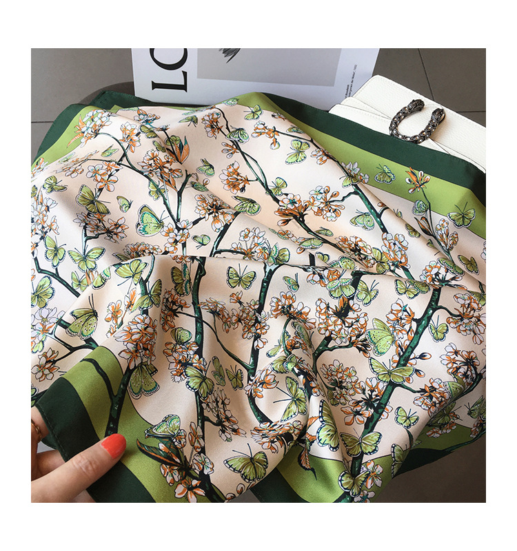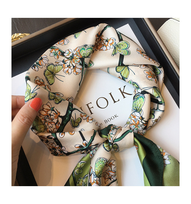 실크 스카프 새로운 2025 뽕나무 실크 달콤한 스카프 꽃 나비 실크 목도리 가을 올 매치 작은 광장 스카프스토어 가기