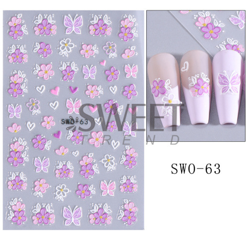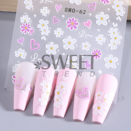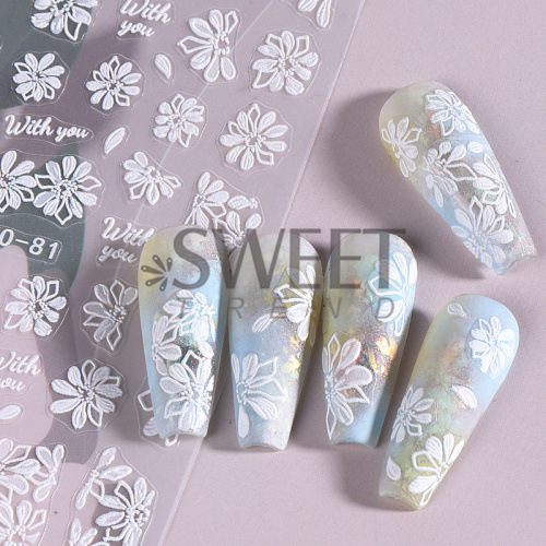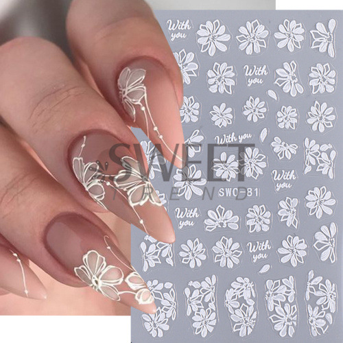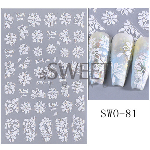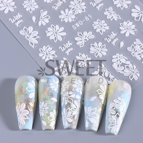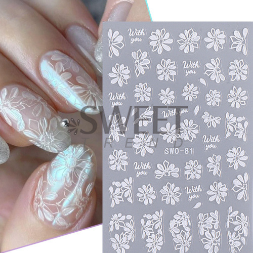 국경 새 꽃 네일 아트 스티커 Ins 스타일 봄 손으로 그린 흰색 꽃 접착제 네일 데칼 장식스토어 가기