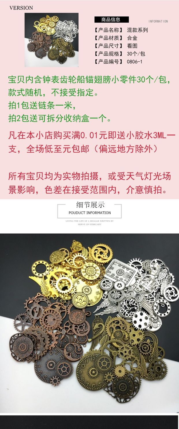 수제 DIY 스팀 펑크 시계 기어 드롭 접착제 밀봉 합금 날개 앵커 신발 모자 의류 혼합 장식스토어 가기