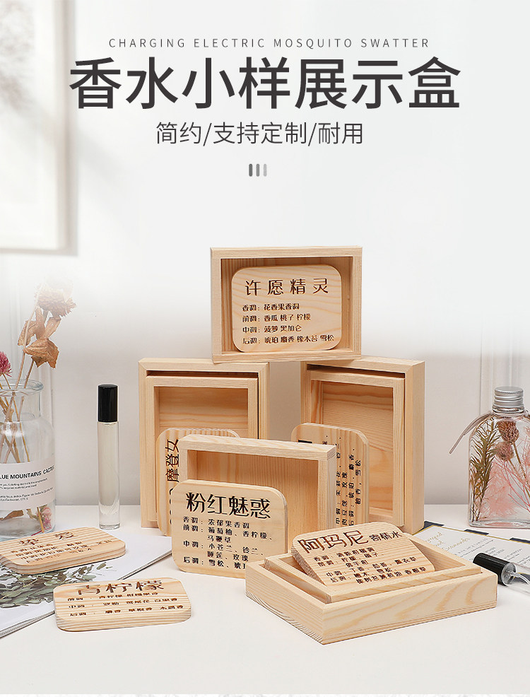 공장 단단한 나무 조각 샘플 향수 나무 브랜드 나무 상자 소개 브랜드 나무 상자 디스플레이 브랜드 나무 재료 조각 기술스토어 가기