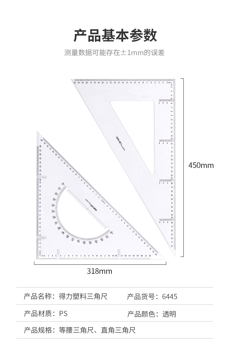 델리 시험 삼각형 통치자 플라스틱 삼각형 통치자 15 20 25 30 35 40 45cm 투명한 큰 삼각형 판