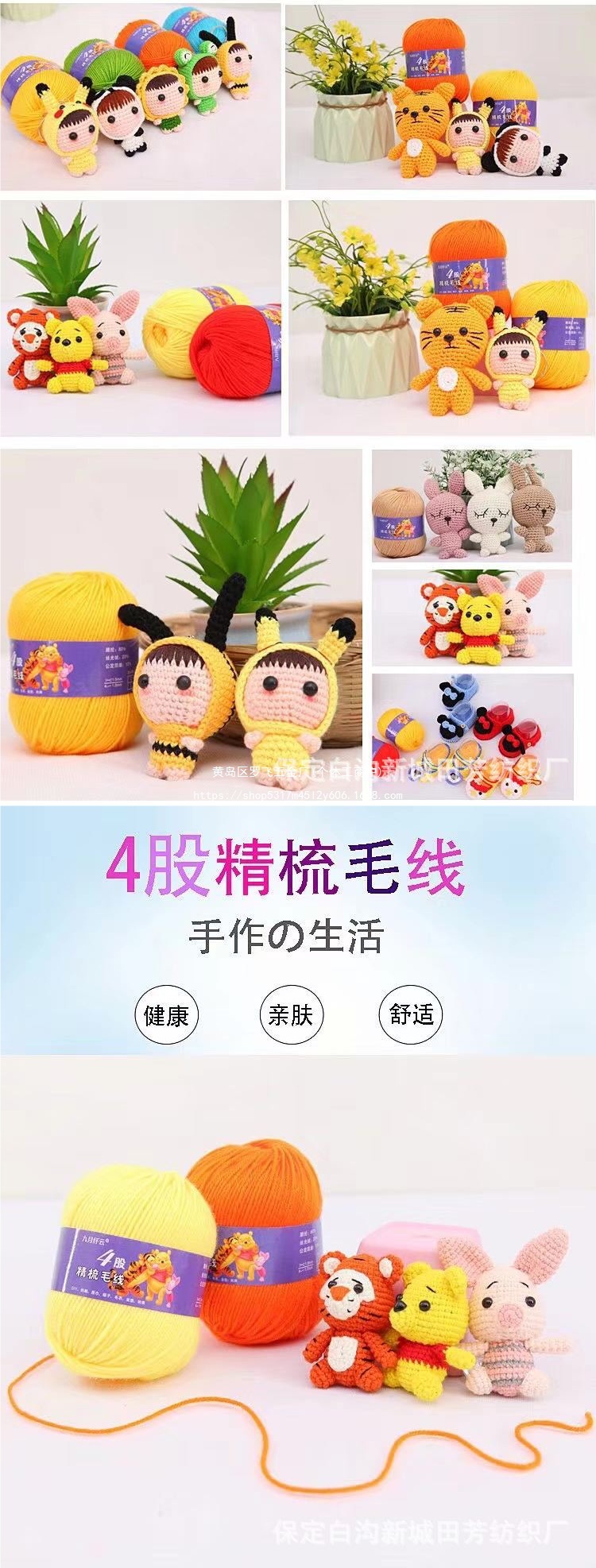 순수 아크릴 울 그룹 손으로 짠 코튼 신발 라인 어린이 DIY 후크 인형 쿠션 의류 수제 양모 기타스토어 가기