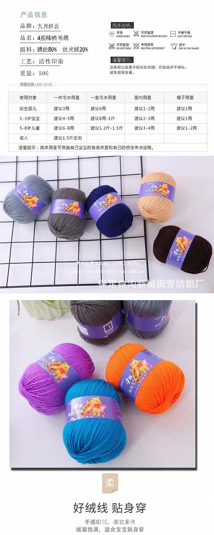 순수 아크릴 울 그룹 손으로 짠 코튼 신발 라인 어린이 DIY 후크 인형 쿠션 의류 수제 양모 기타