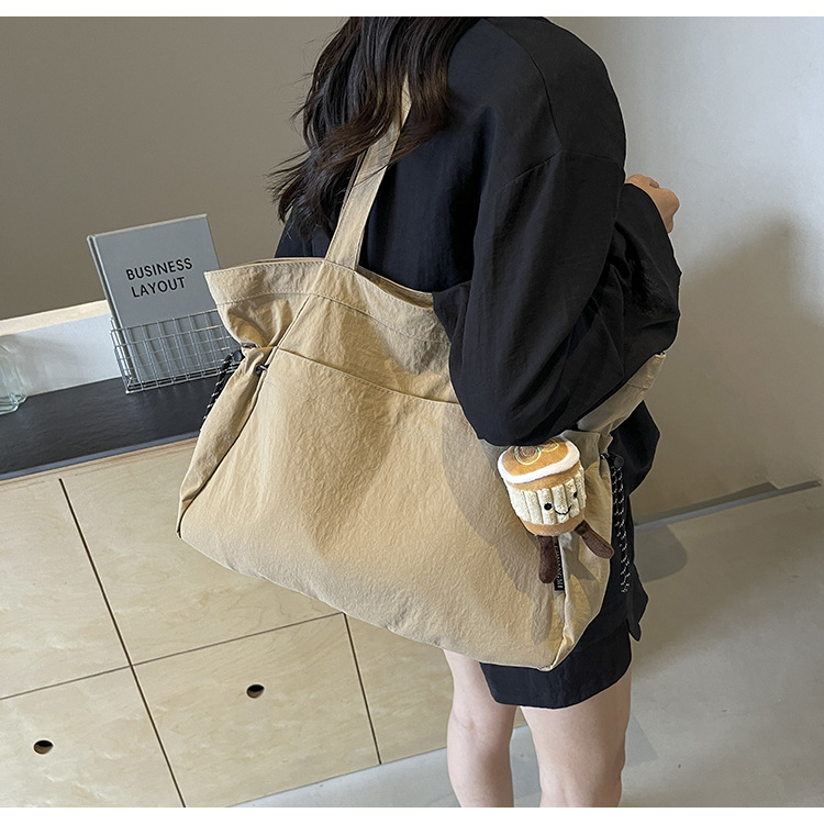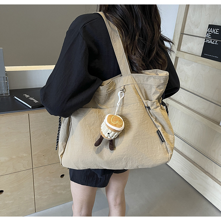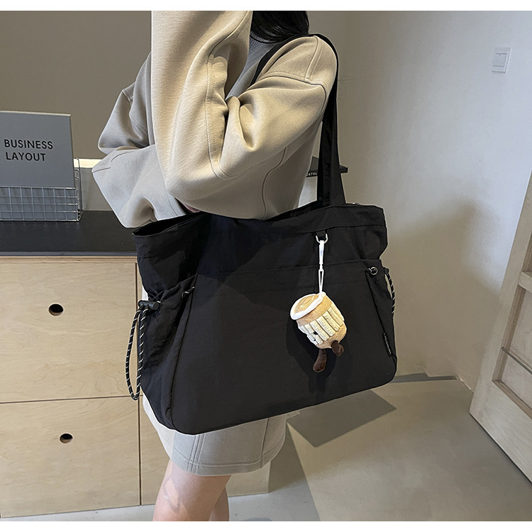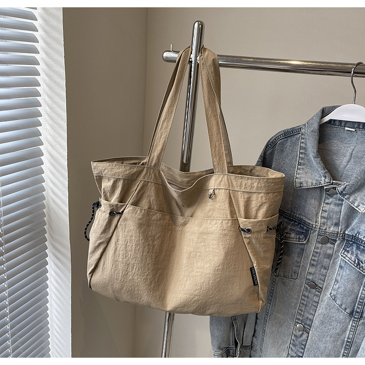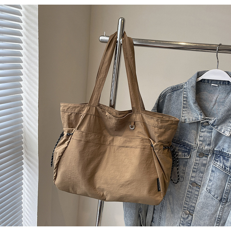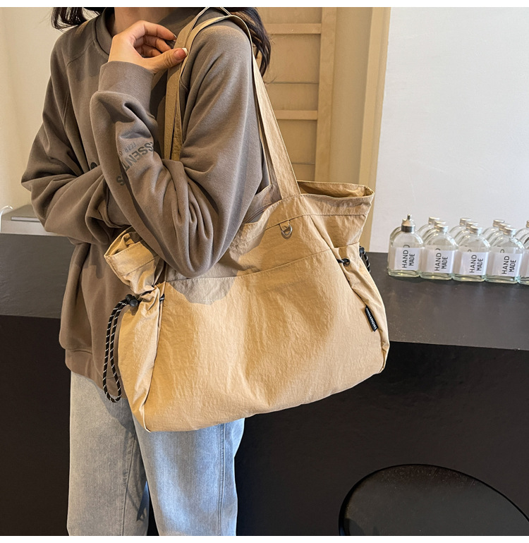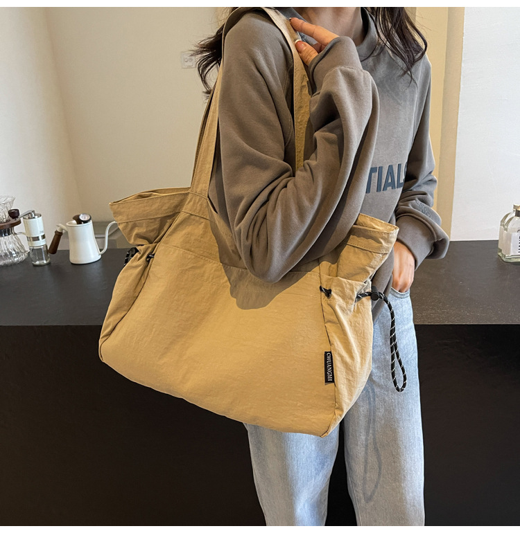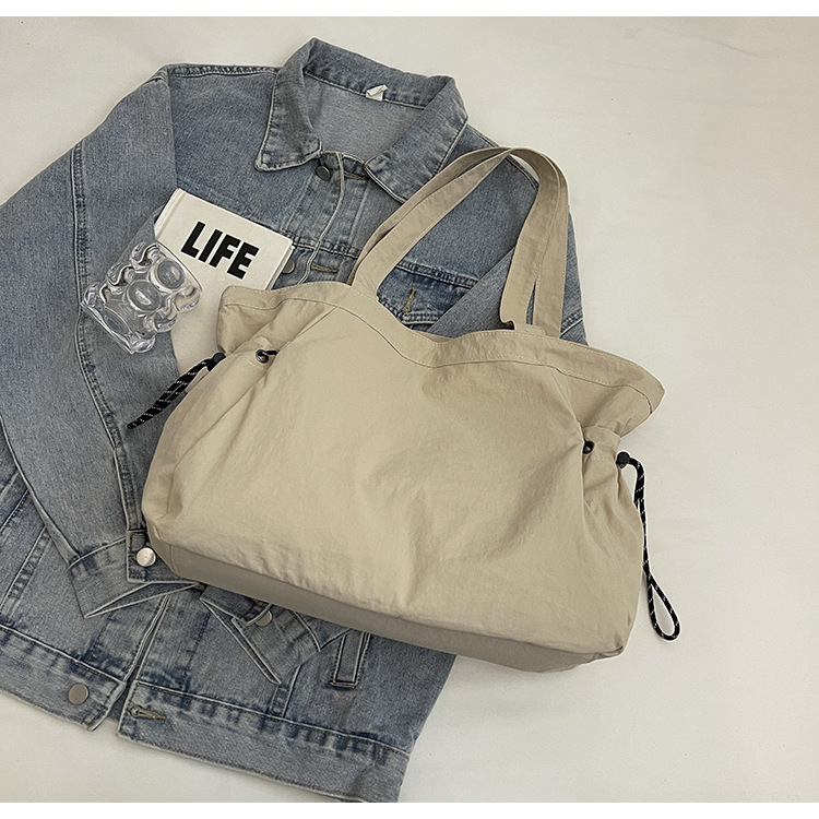 심플 모리 스타일 경량 드래그 스트링 토트 백 여성의 봄 새로운 캐주얼 싱글 숄더 대용량 하이 엔드 통근 여성