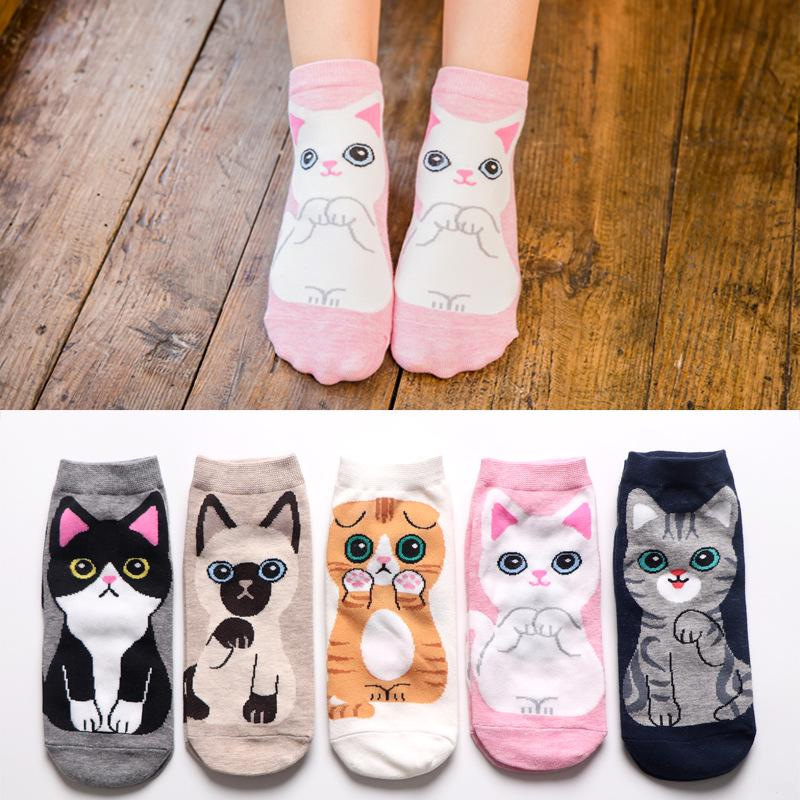 봄 여름 신상품 일본 및 한국 스타일 면 양말 만화 애완동물 여성 귀여운 고양이 강아지 짧은 양말 도매스토어 가기
