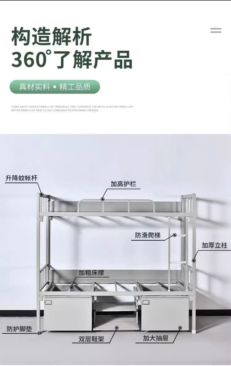 이층 침대 유닛 상부 및 하부 이층 철제 프레임 침대 직원 기숙사 침대 하부 테이블 내부 캐비닛 연구 테이블스토어 가기