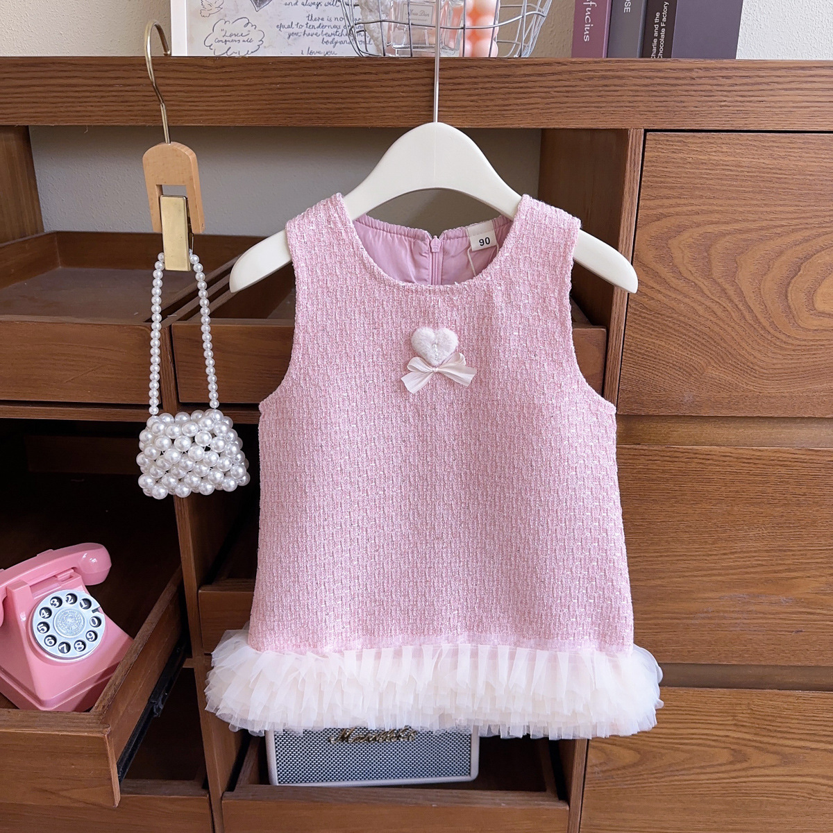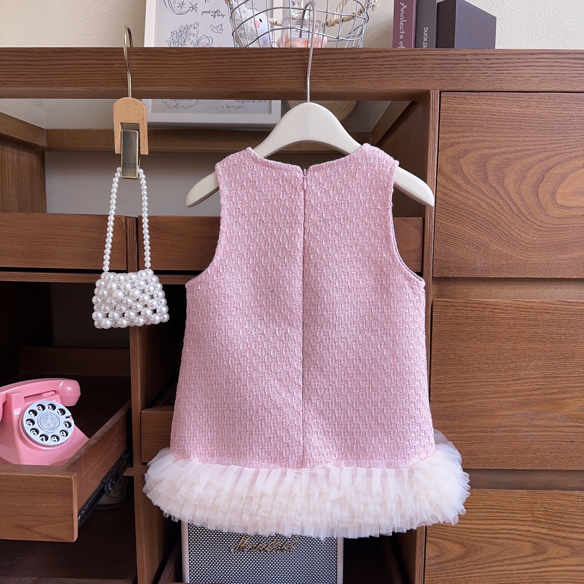 여자 조끼 스커트 2025 봄과 가을 새로운 민소매 트위드 메쉬 작은 향수 조끼 스커트 크로스 국경 머리카락스토어 가기
