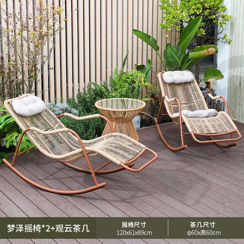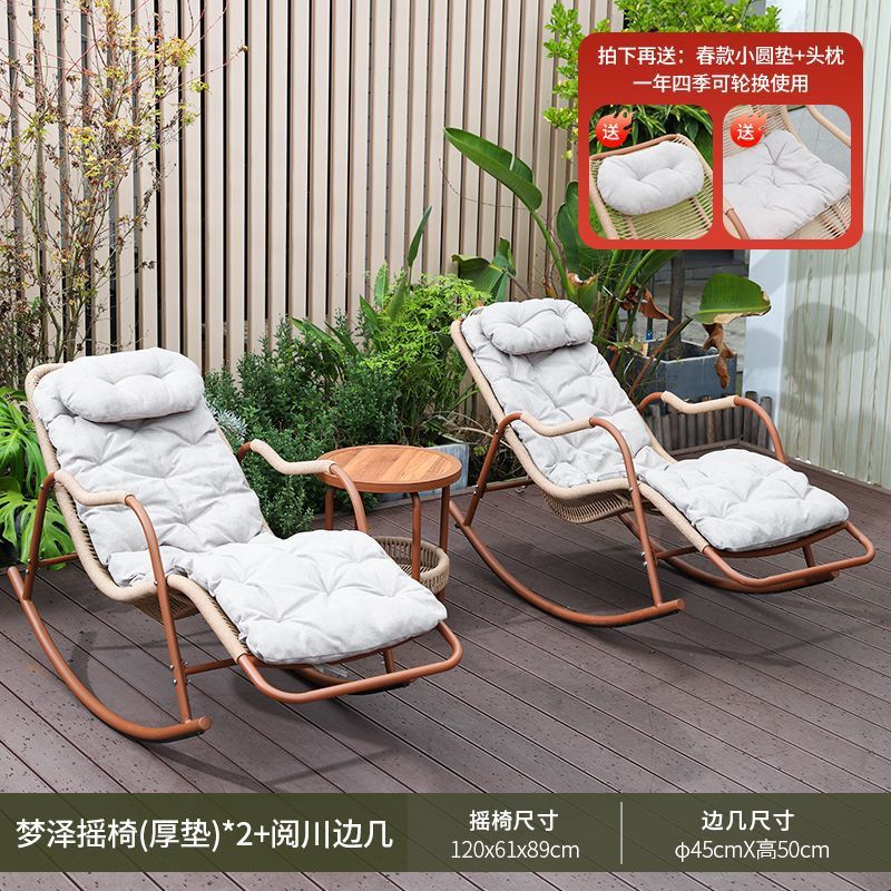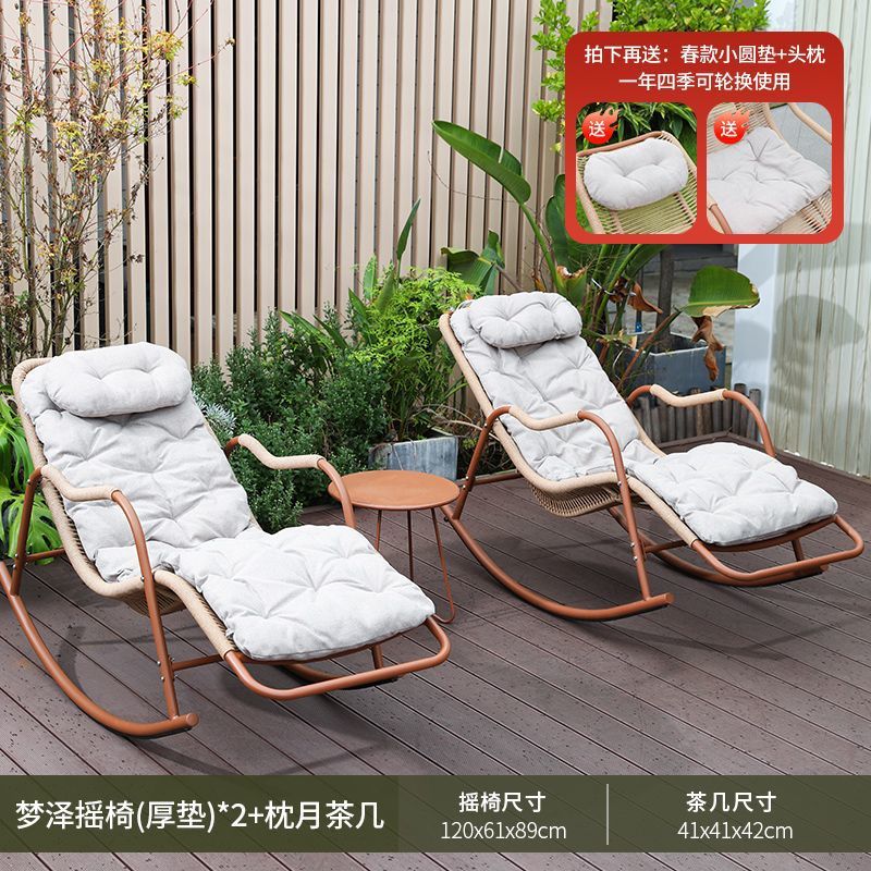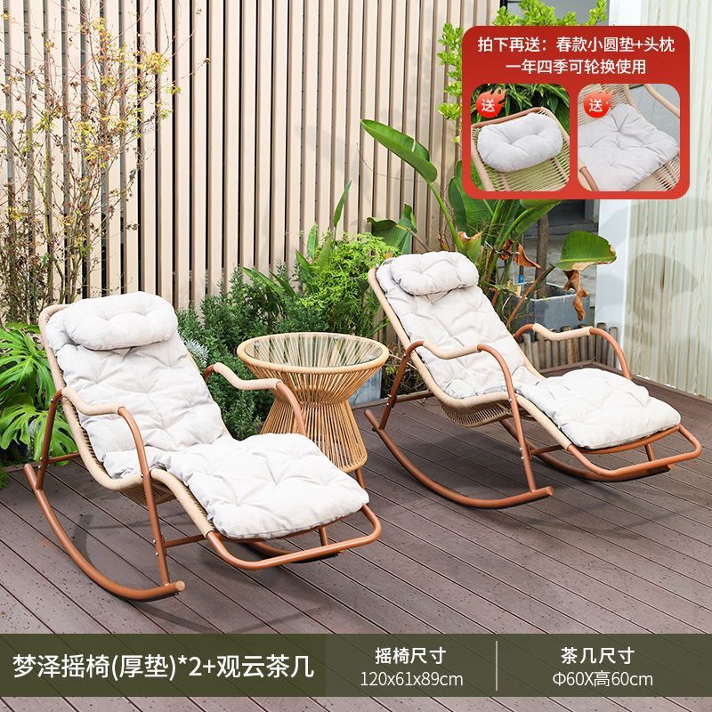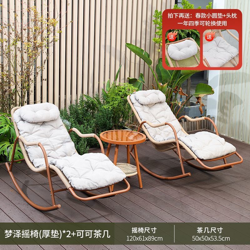• [두꺼운 쿠션] Mengze 흔들의자 2개 + Yuechuan 커피 테이블