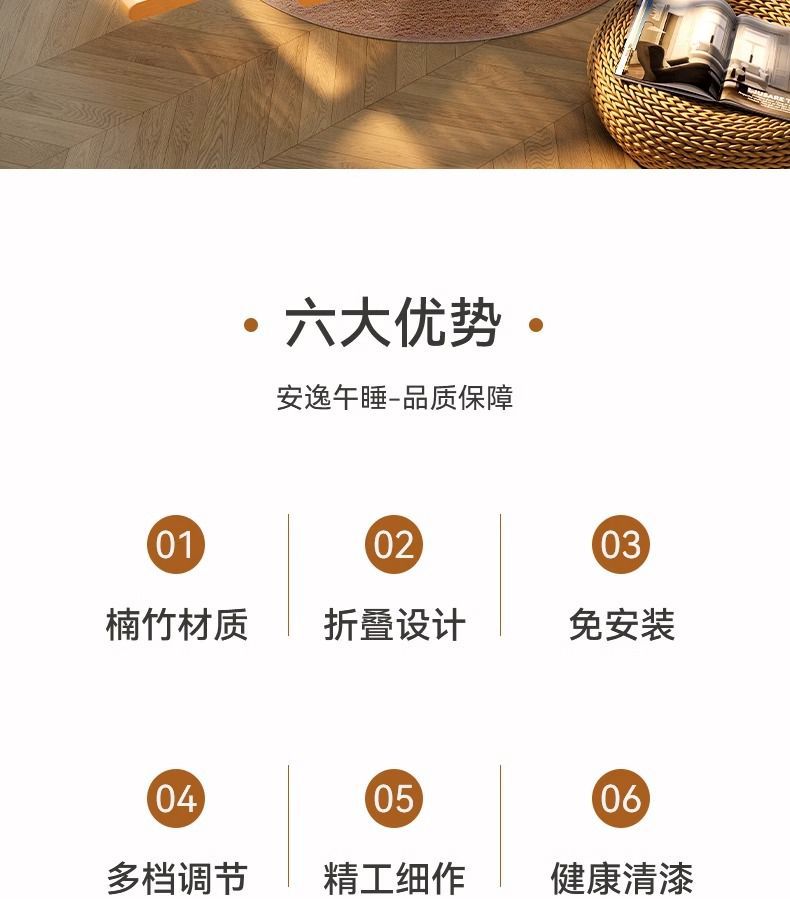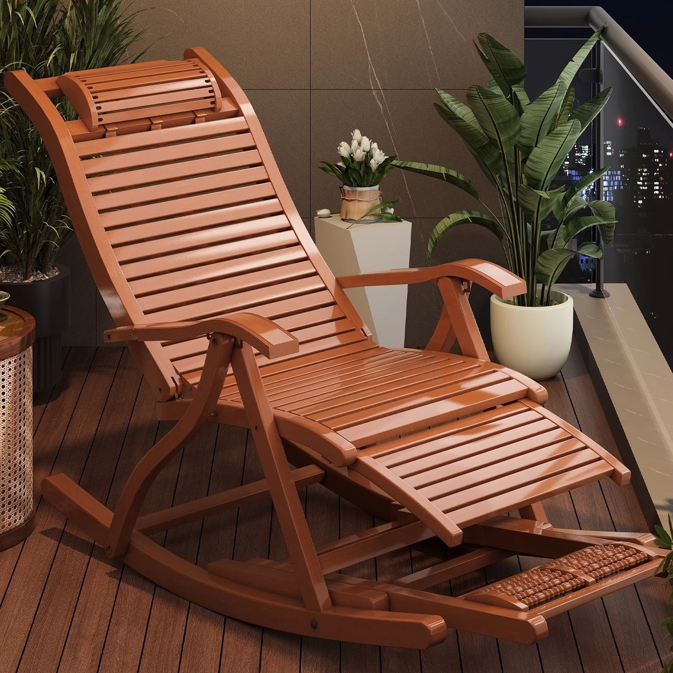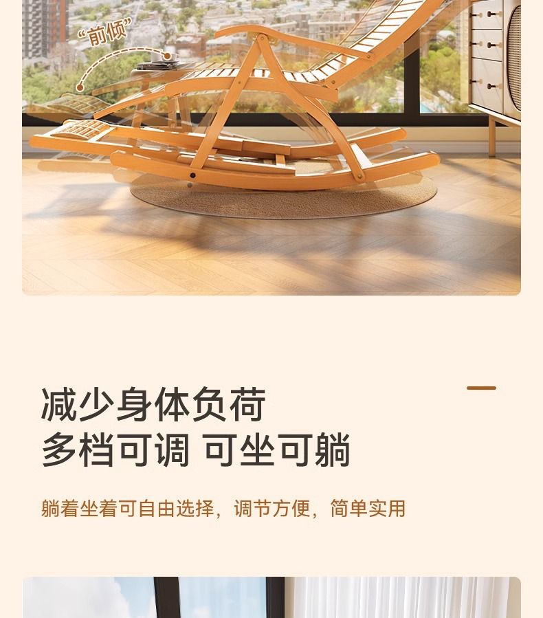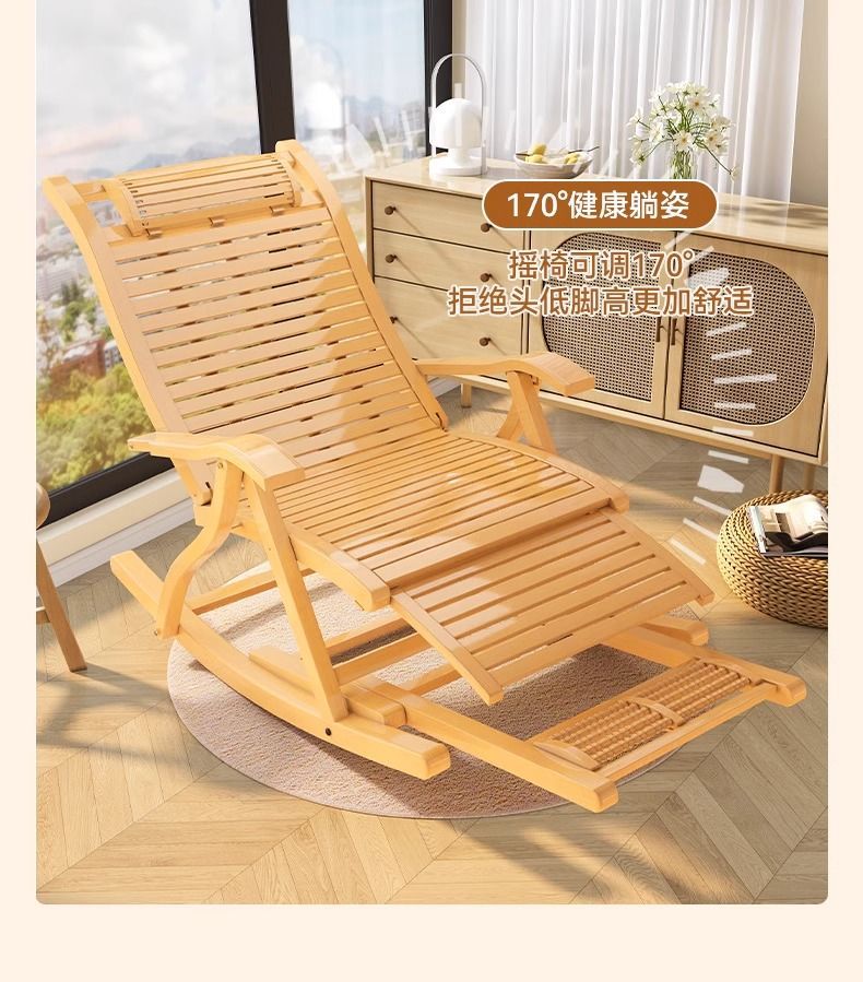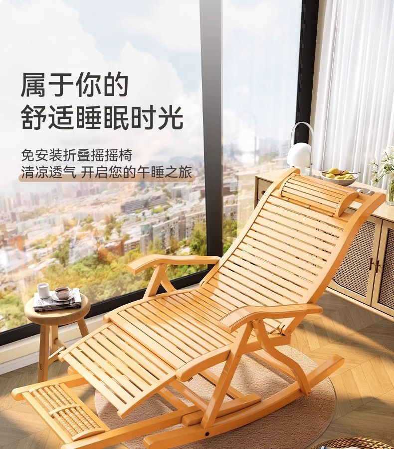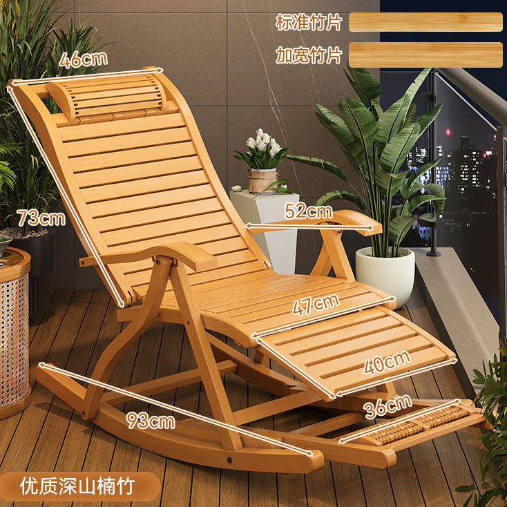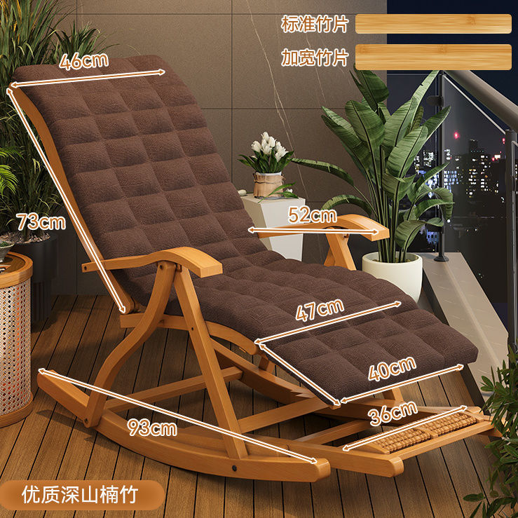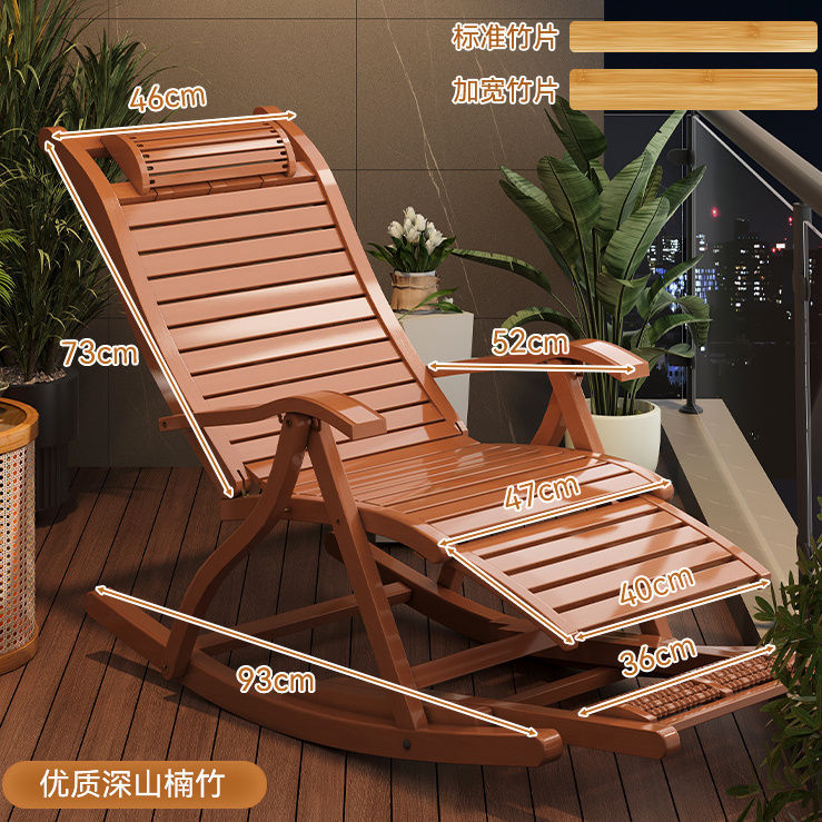 잠자는 접이식 레저를위한 대나무 흔들 의자 발코니 레저 레코더 로킹 의자 노인 홈 코트야드 런치 브레이크 의자스토어 가기