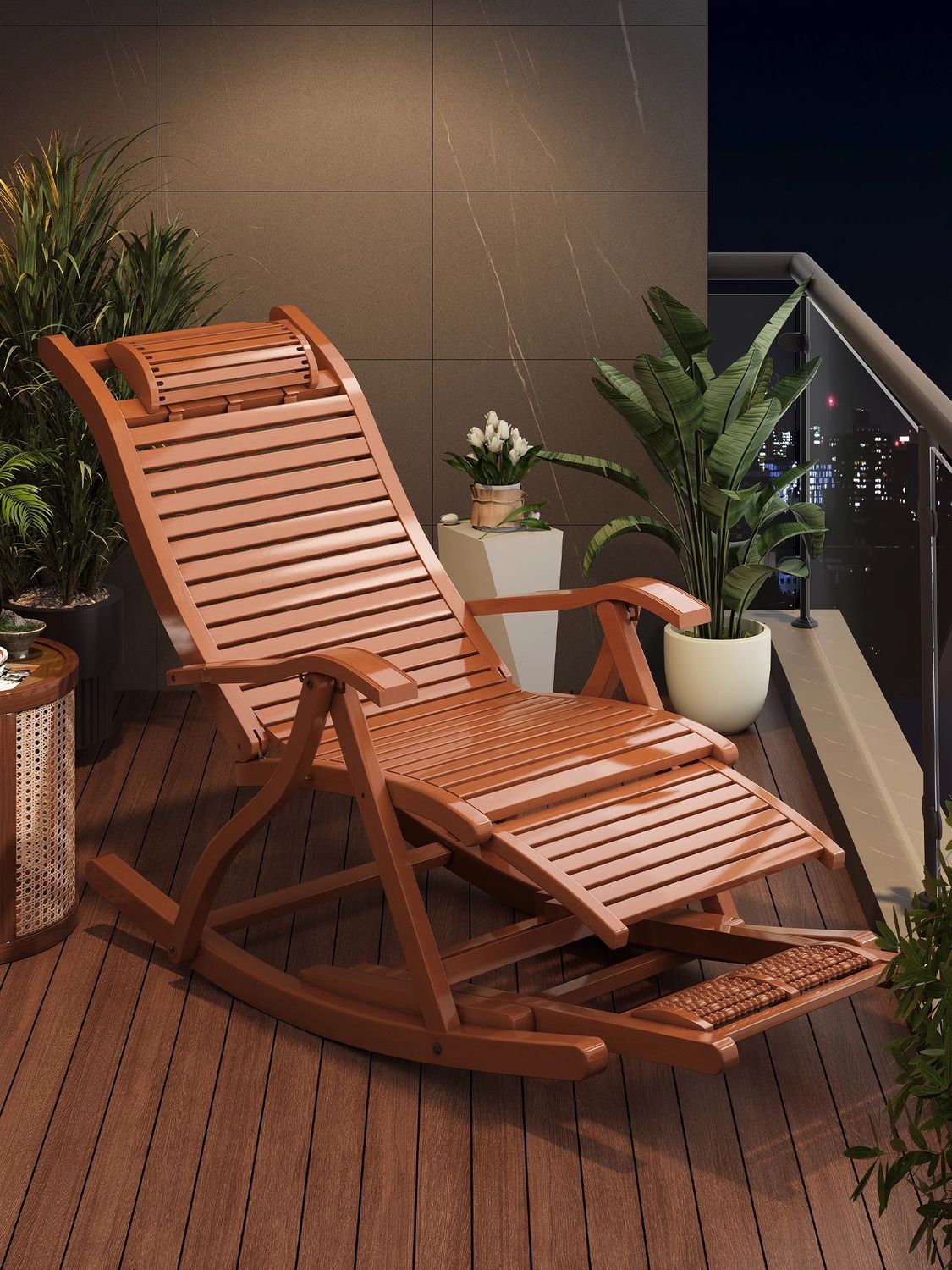 잠자는 접이식 레저를위한 대나무 흔들 의자 발코니 레저 레코더 로킹 의자 노인 홈 코트야드 런치 브레이크 의자