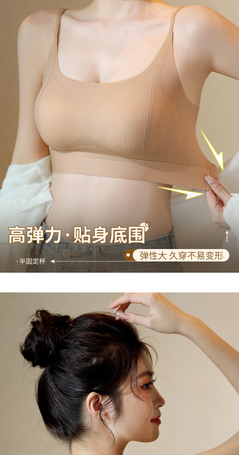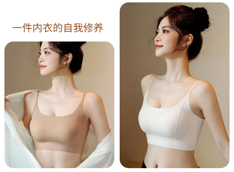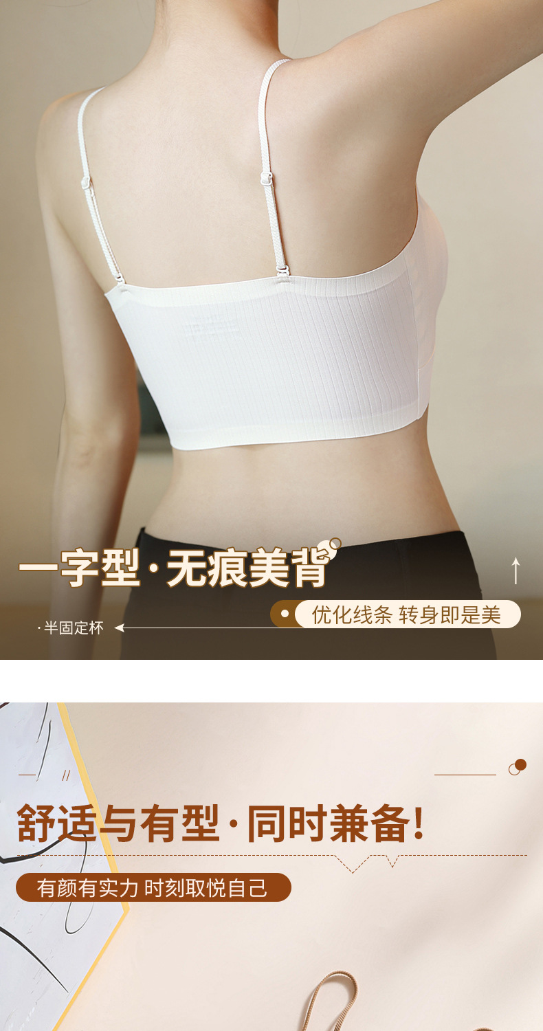 아름다운 등 속옷 여성의 흰색 얇은 어깨 카미 솔 조끼 스트레없는 가슴 포장 안티 워킹 여름 얇은 얼음 실크 추적없는 브래지어스토어 가기