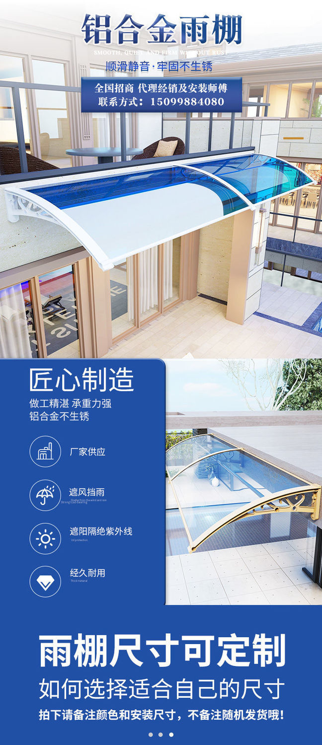 알루미늄 합금 캐노피 두꺼운 도어 헤드 비 윙 도어 Eave 발코니 창 그늘 캐노피 야외 가정용 테라스