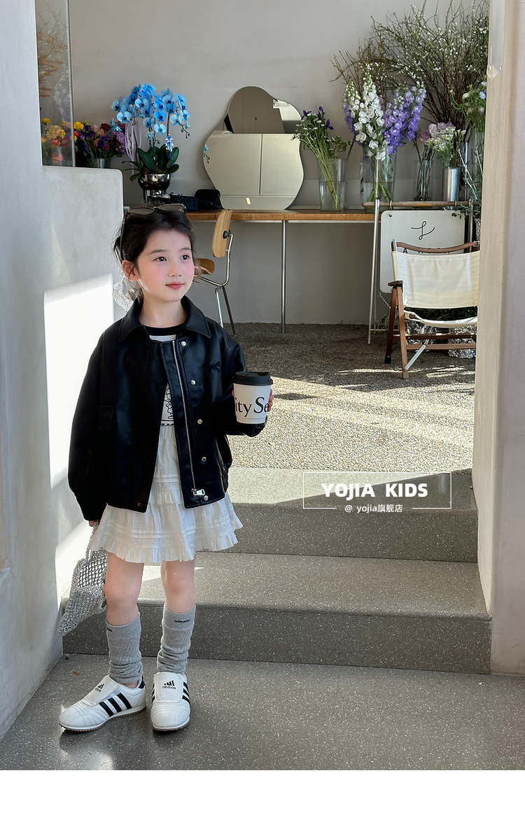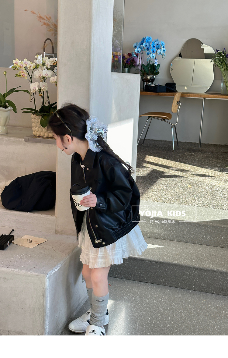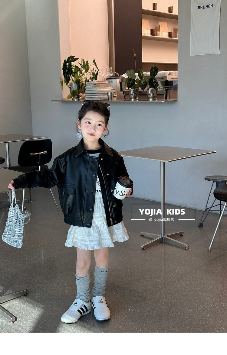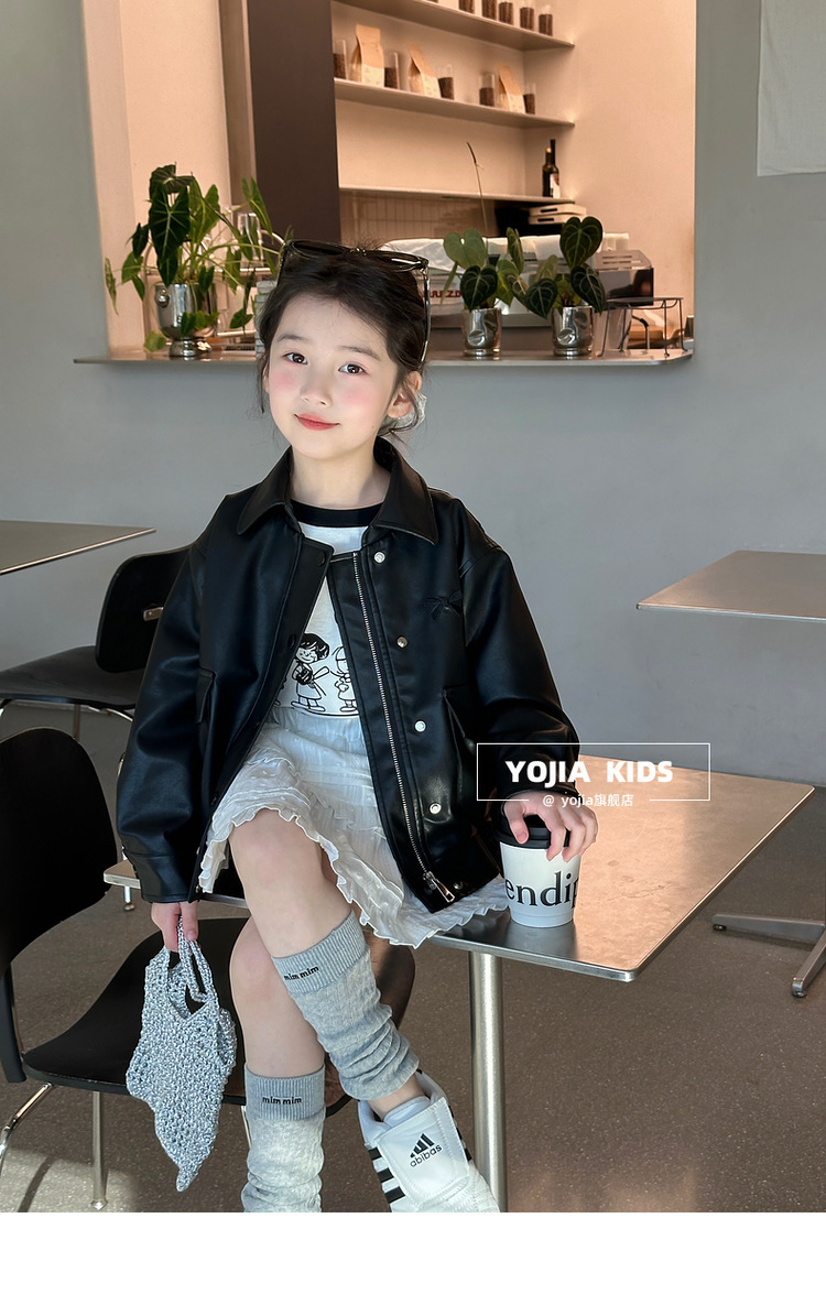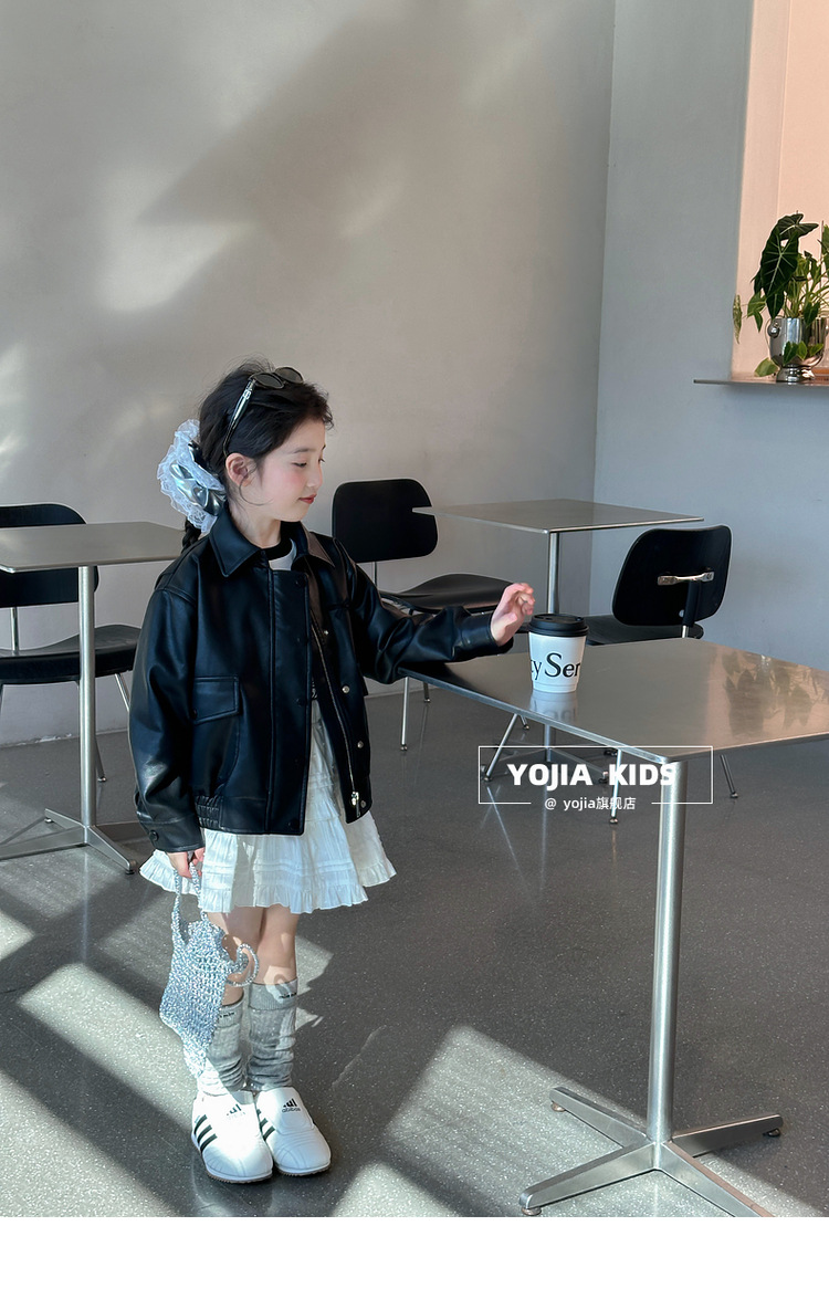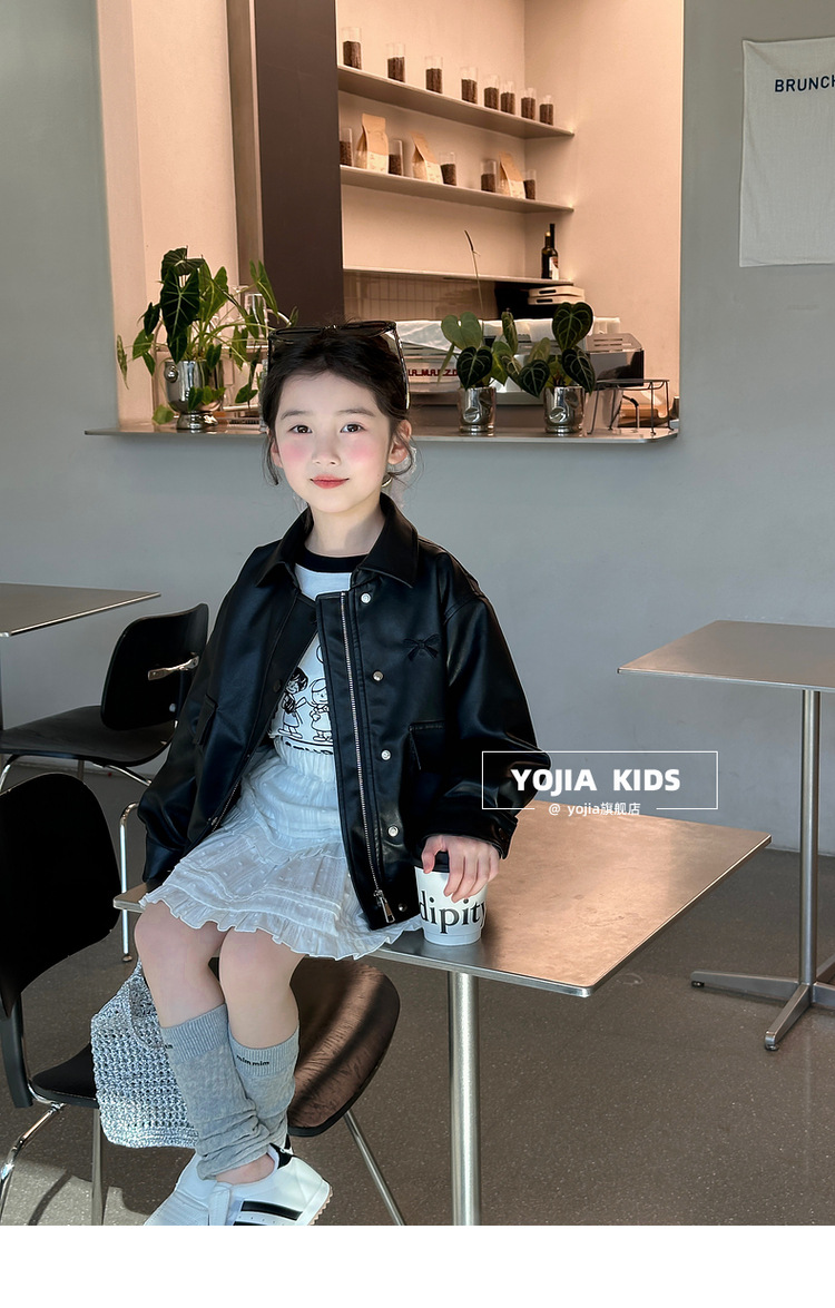 YOJIA Girls 'Coat Spring 2025 새로운 한국 스타일 프라이드 스트리트 걸스 가죽 자켓 어린이 봄 바이커 옷스토어 가기