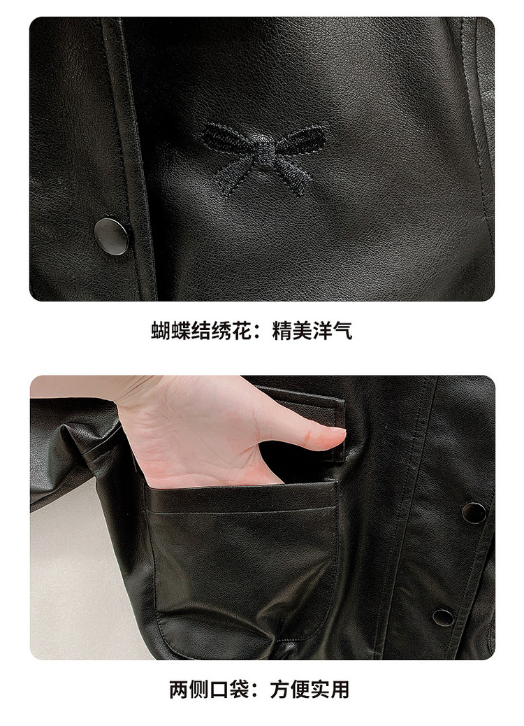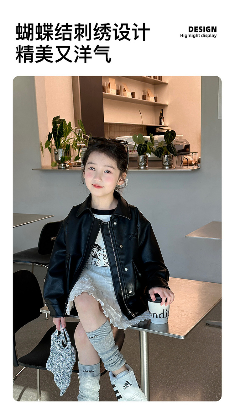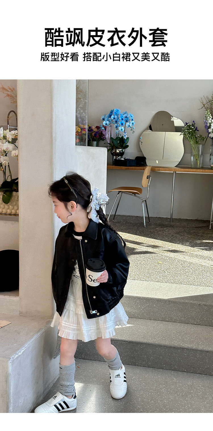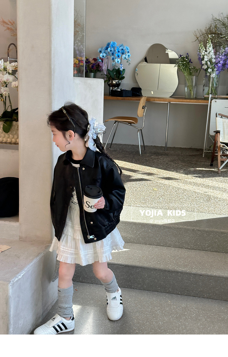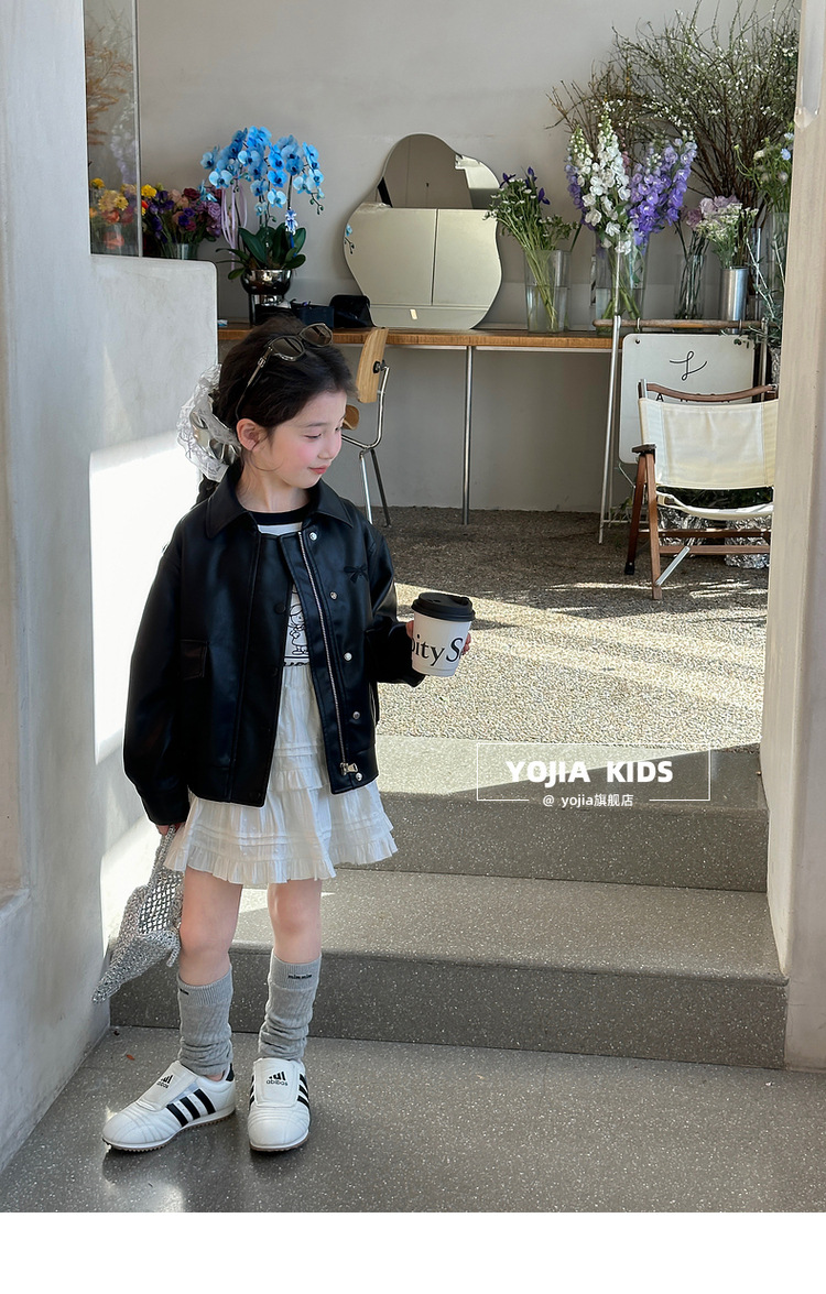 YOJIA Girls 'Coat Spring 2025 새로운 한국 스타일 프라이드 스트리트 걸스 가죽 자켓 어린이 봄 바이커 옷스토어 가기