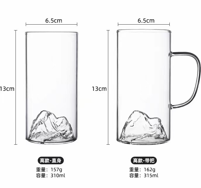관산컵 고붕규산유리 위스키잔 가정용 창의적인 아이스마운틴 물컵 차컵 고온 내성 수제스토어 가기