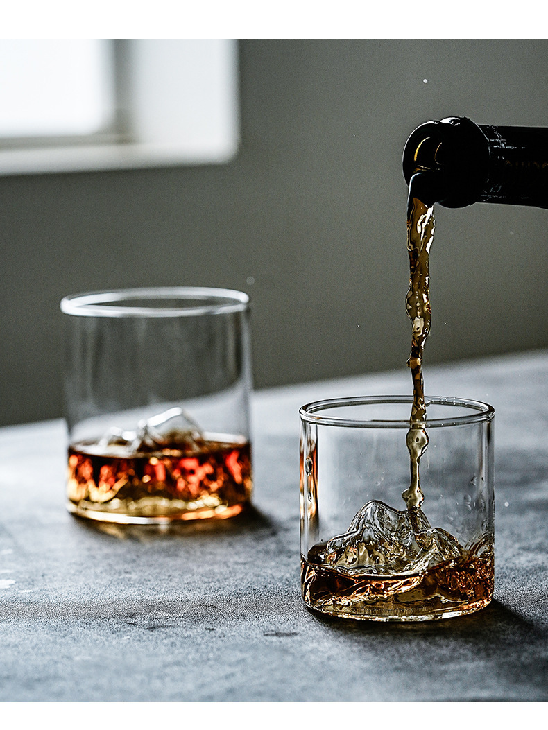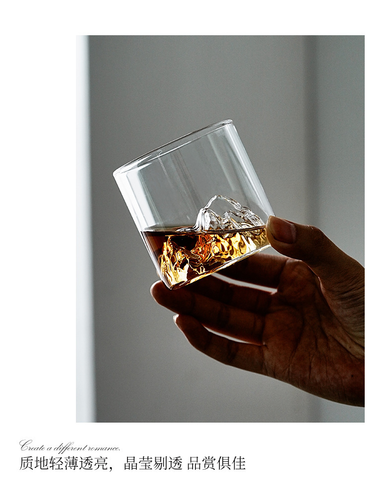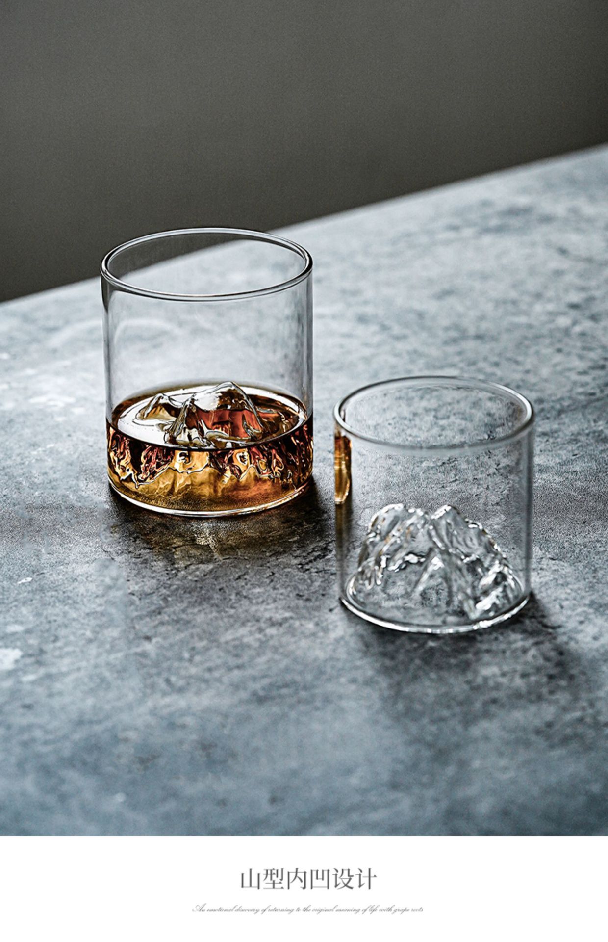 관산컵 고붕규산유리 위스키잔 가정용 창의적인 아이스마운틴 물컵 차컵 고온 내성 수제