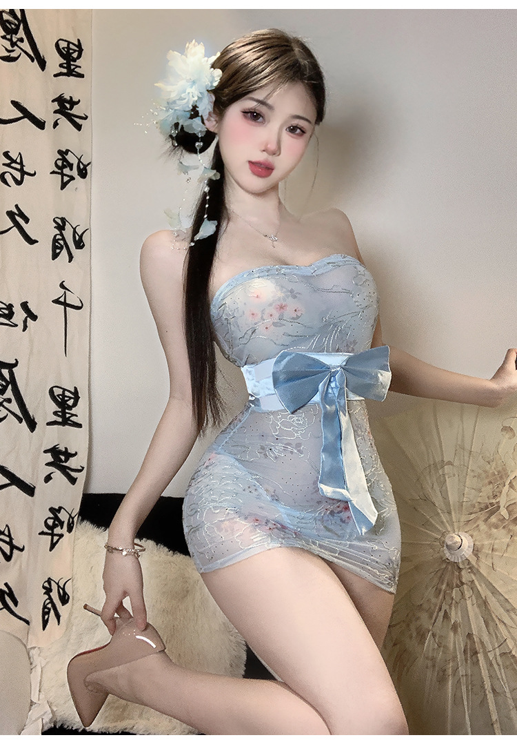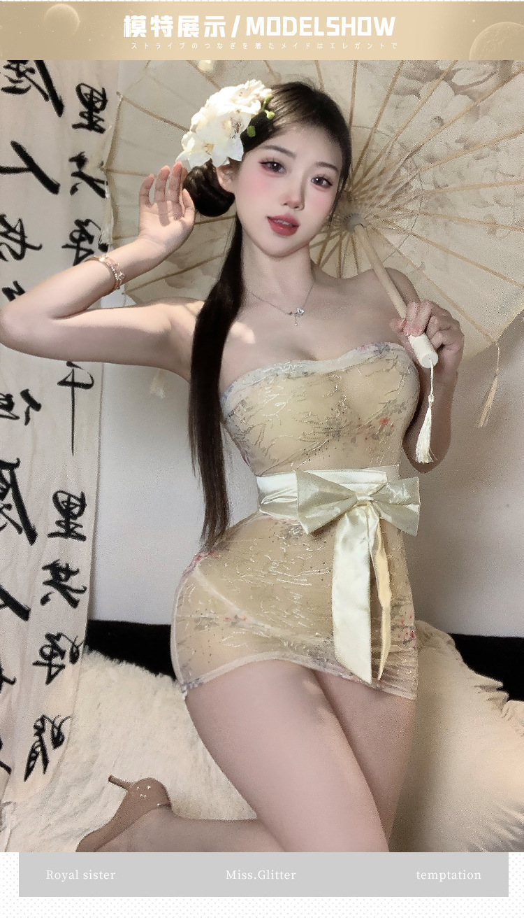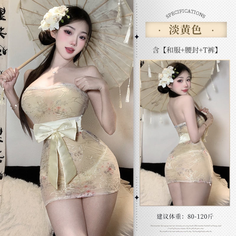 섹시한 속옷 순수한 욕망 인쇄 관점 기모노 섹시한 끈이없는 엉덩이 잠옷 유니폼 비 이륙 잠옷 세트 2117