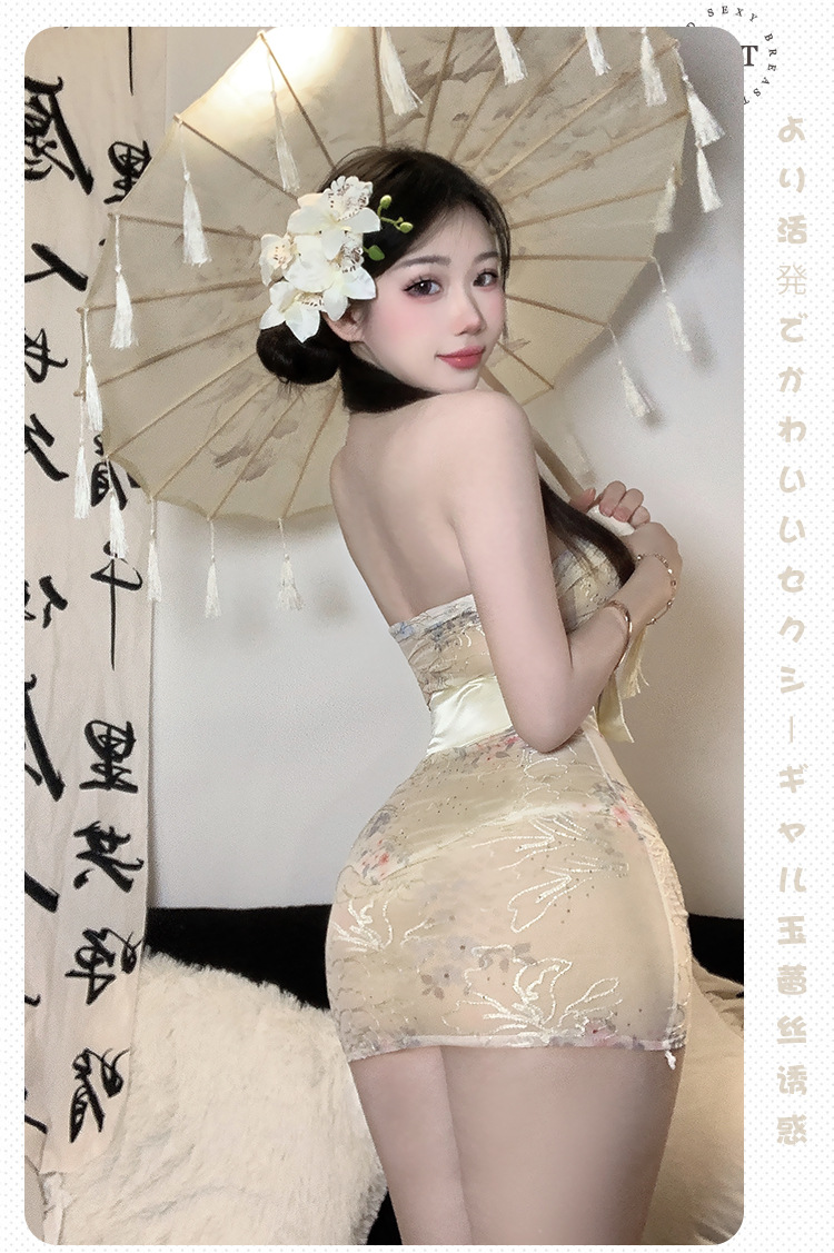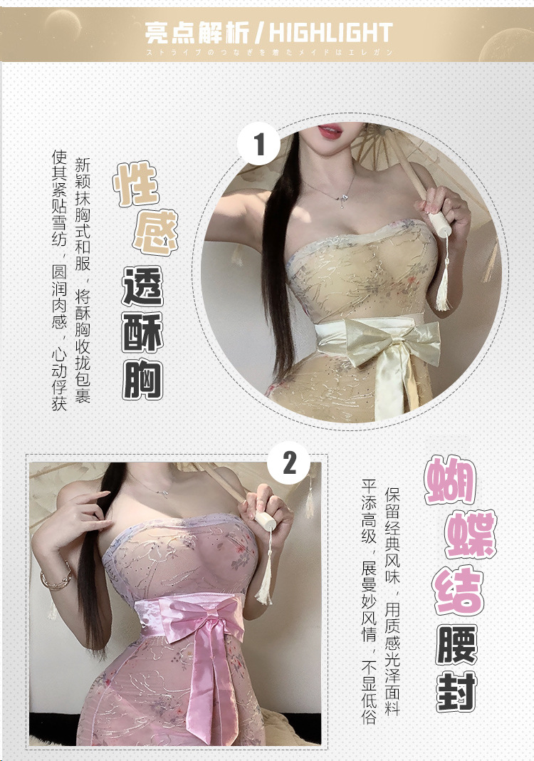 섹시한 속옷 순수한 욕망 인쇄 관점 기모노 섹시한 끈이없는 엉덩이 잠옷 유니폼 비 이륙 잠옷 세트 2117스토어 가기