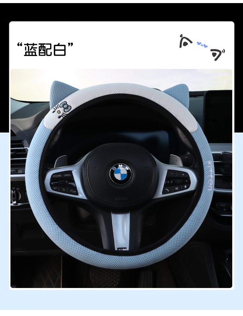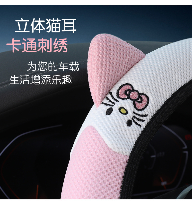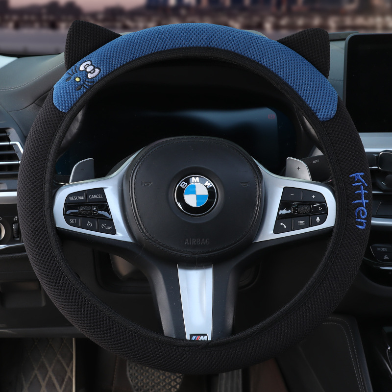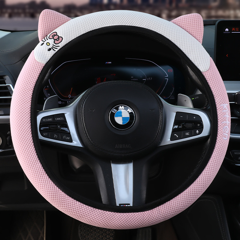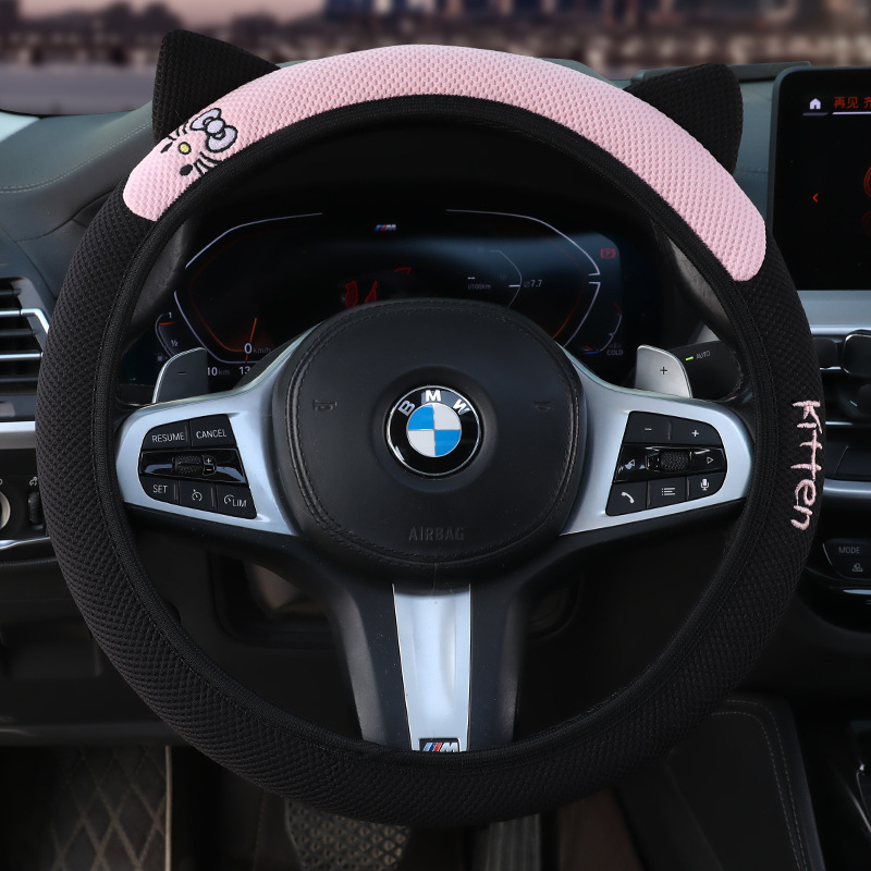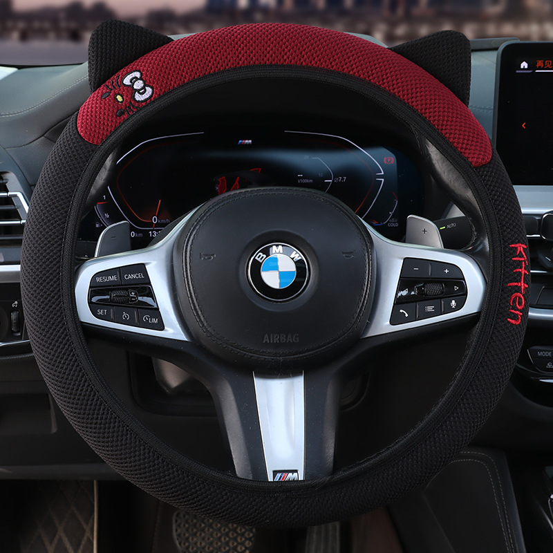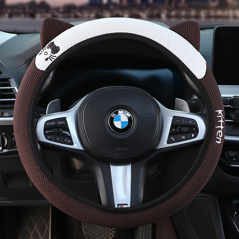 국경 사계절 보편적 인 스트레치 통기성 새로운 자수 고양이 귀 미끄럼 방지 땀 흡수성 만화 자동차 스티어링 휠 핸들 커버