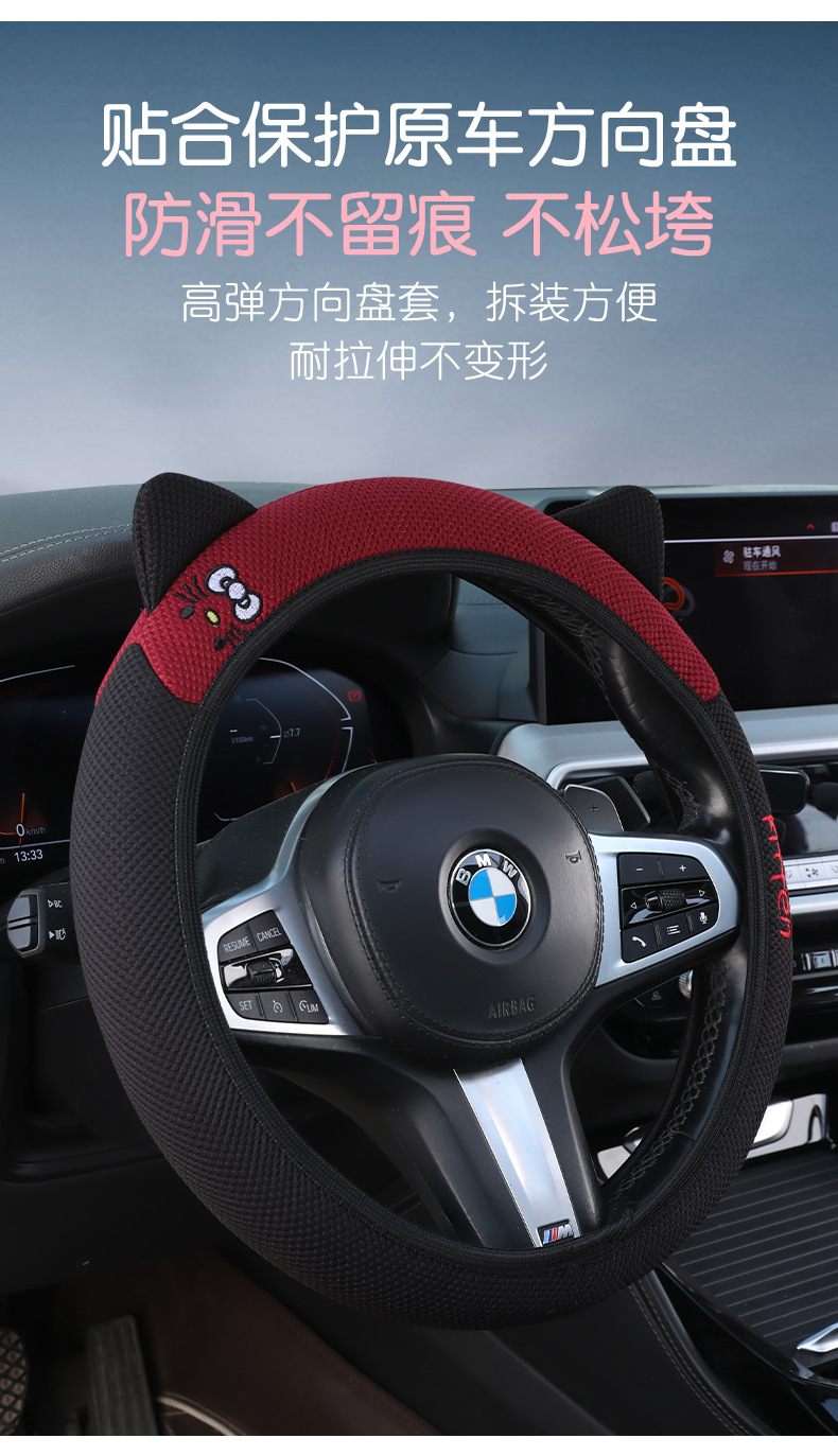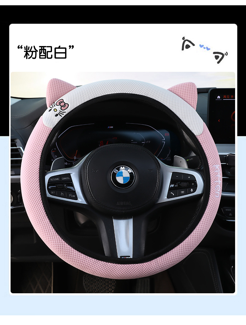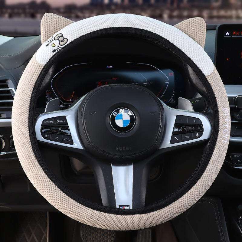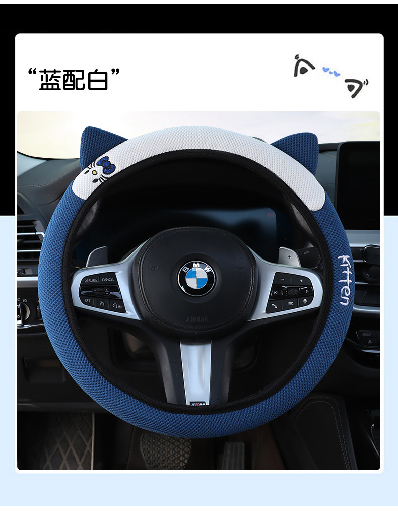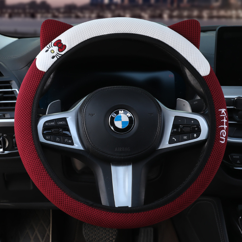 국경 사계절 보편적 인 스트레치 통기성 새로운 자수 고양이 귀 미끄럼 방지 땀 흡수성 만화 자동차 스티어링 휠 핸들 커버