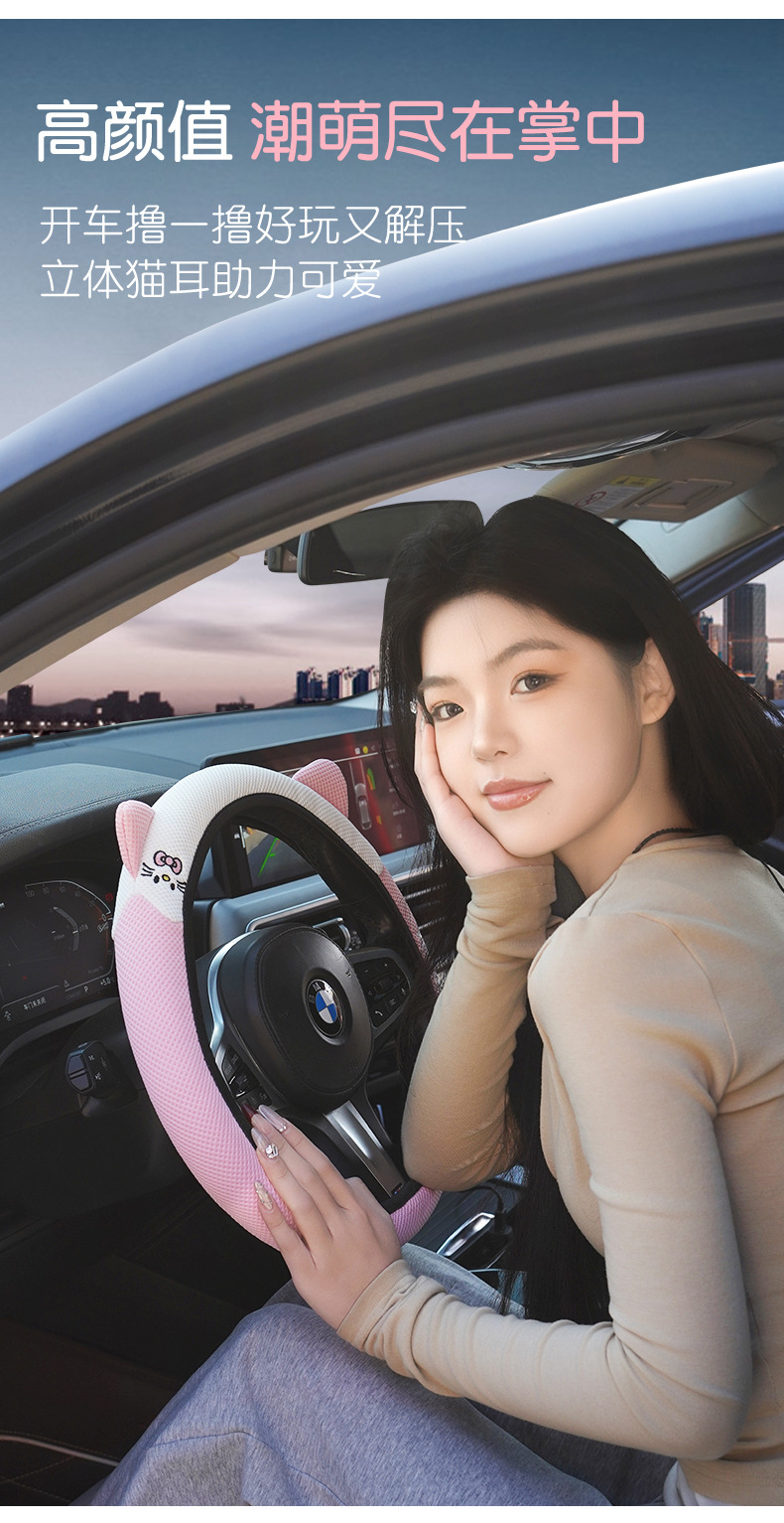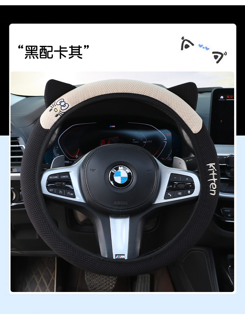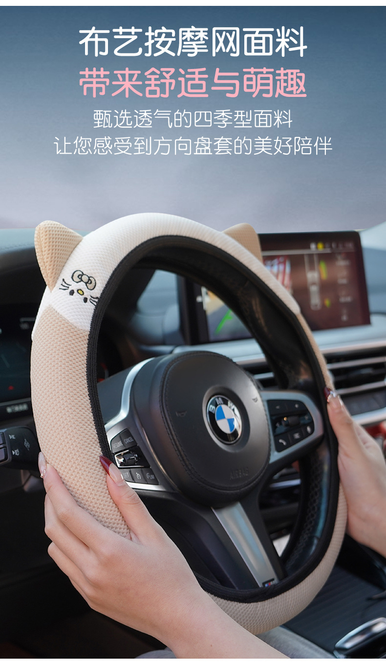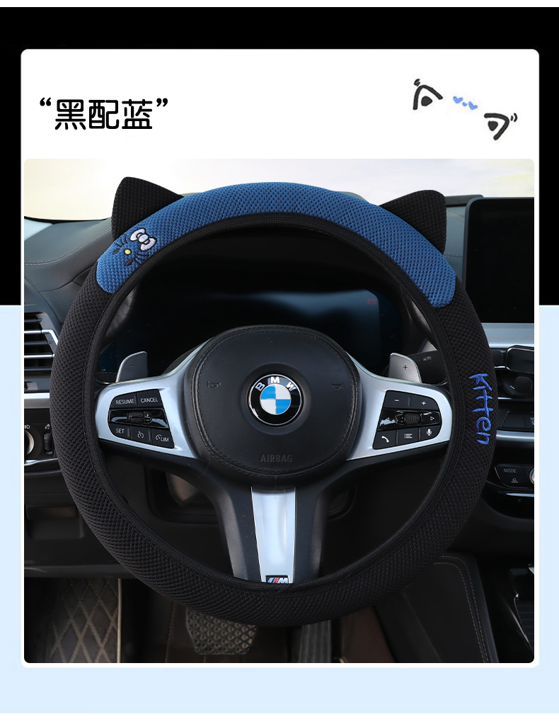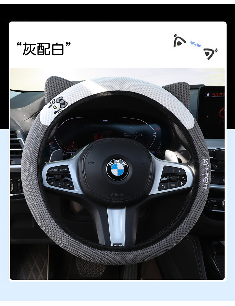 국경 사계절 보편적 인 스트레치 통기성 새로운 자수 고양이 귀 미끄럼 방지 땀 흡수성 만화 자동차 스티어링 휠 핸들 커버