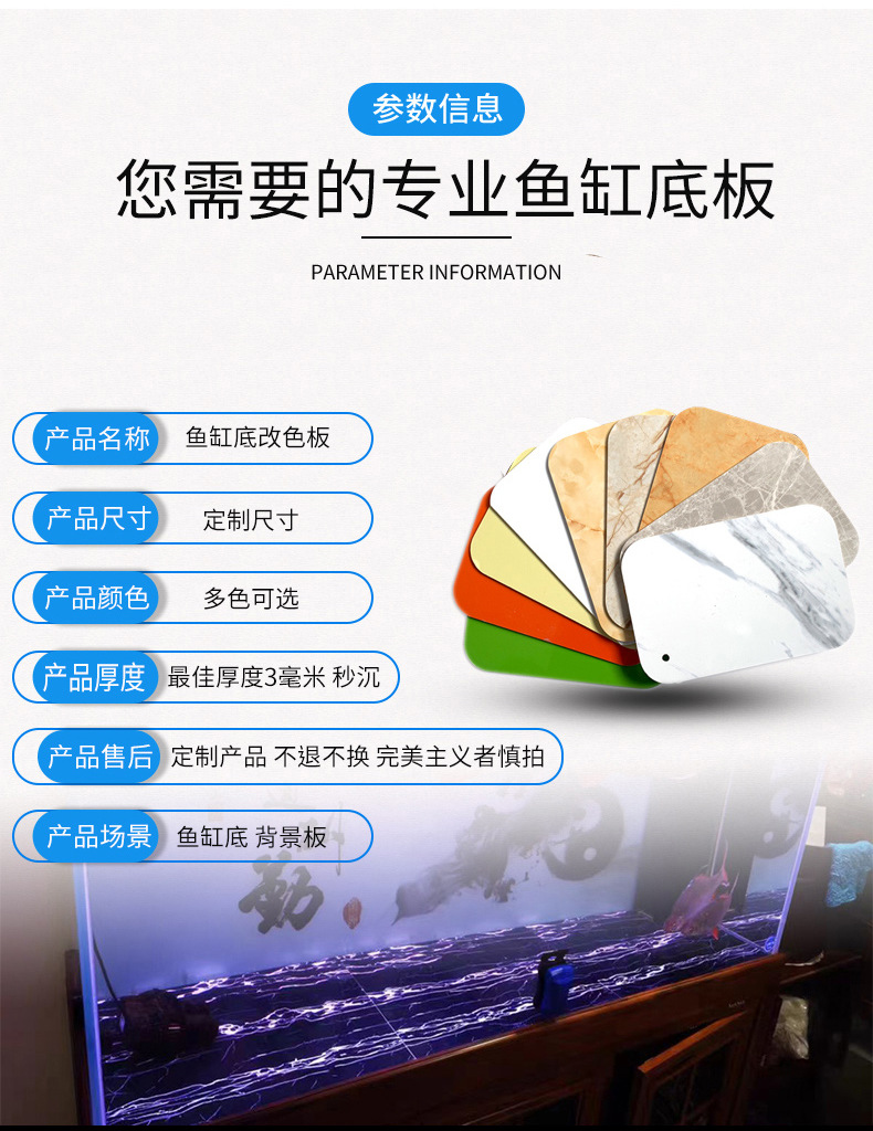 어항이 바닥 컬러플레이트로 변경 무독성 접착제가없는 식품 등급 배경 UV 스톤 플라스틱 판이 스티커 대신 오버플로로 변경되었습니다.