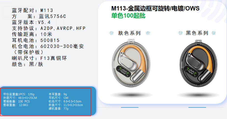 새로운 AI 번역 블루투스 헤드셋 M113 귀 긴 내구성 무선 귀 매달려 지능형 번역 APP에 없음스토어 가기
