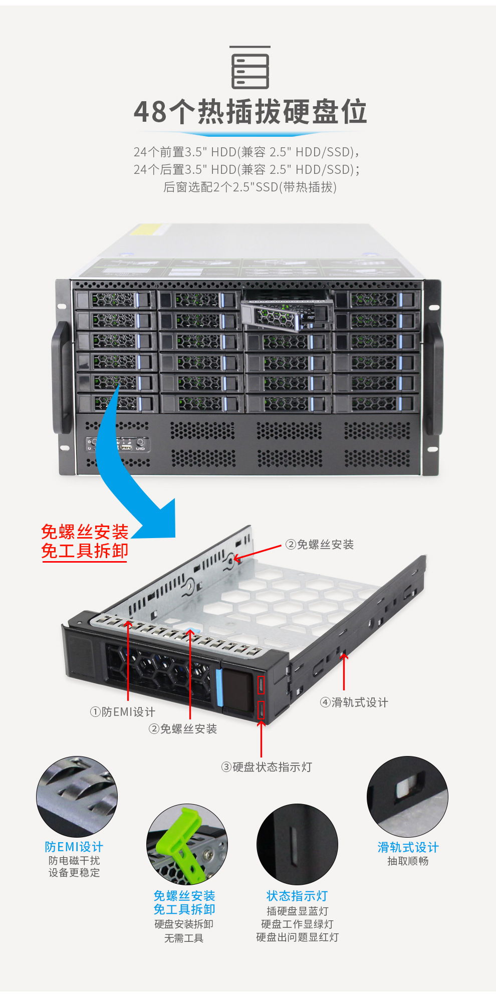 48 디스크 6U 랙 장착 핫 스왑 가능 nas 스토리지 엔터프라이즈 빅 데이터 ATX 마더 보드 중복 전원 서버 섀시