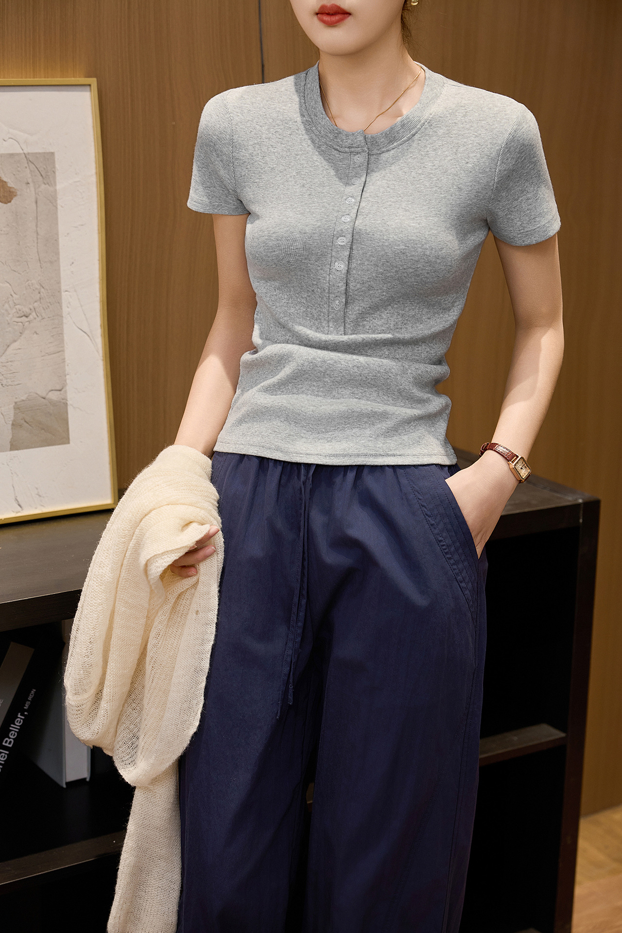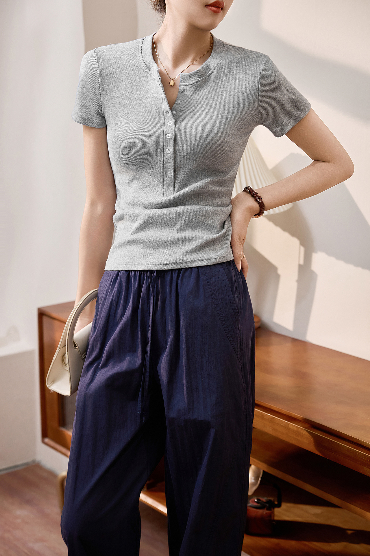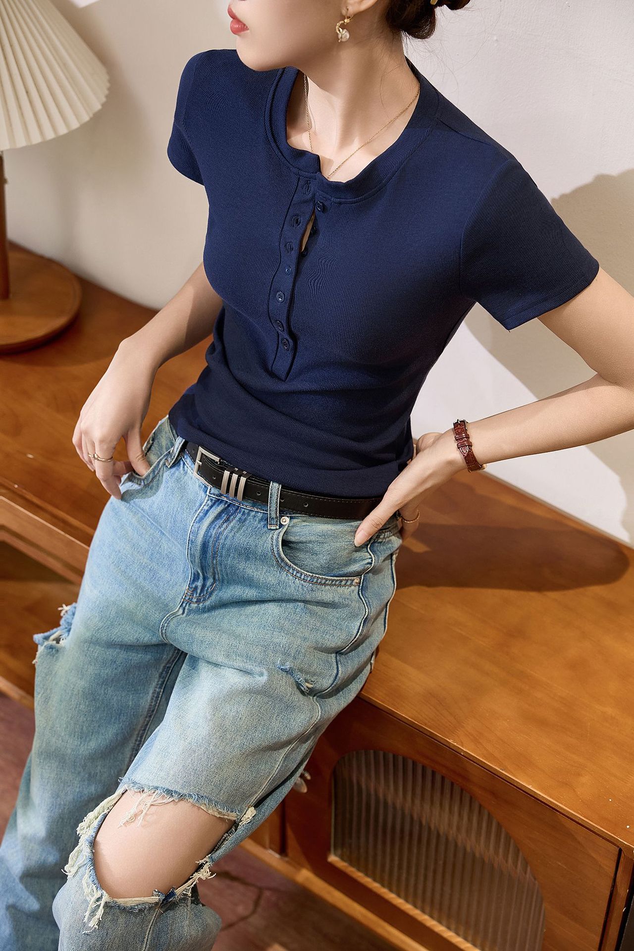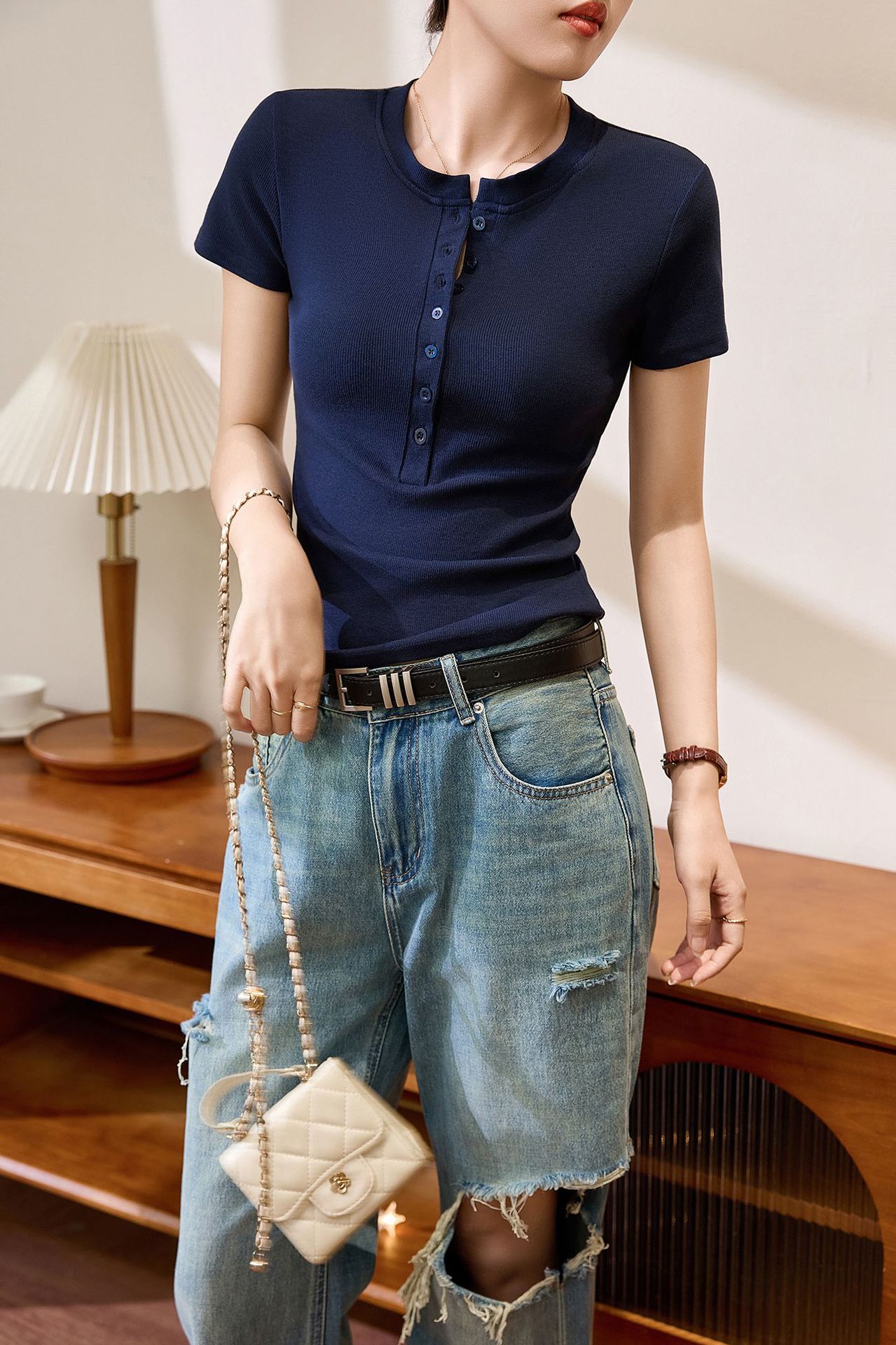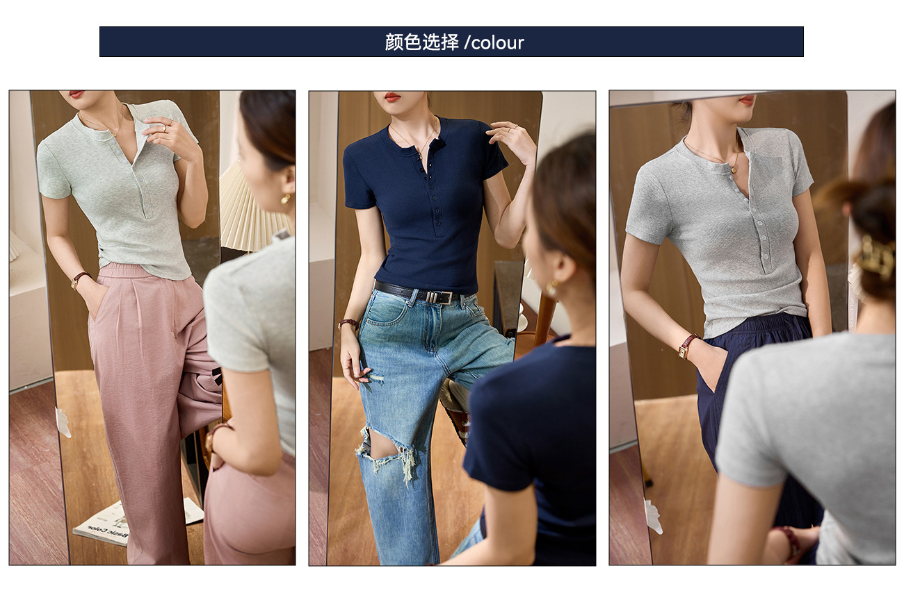 # Tencel 당신은 좋은 소재 Zhen 품질을 사용할 수 있습니다 # 하프 오픈 넥 버튼 티셔츠 여성용 짧은 소매 우아한 조커 숄더 탑스토어 가기