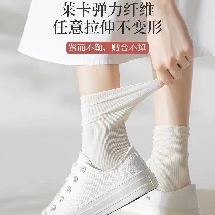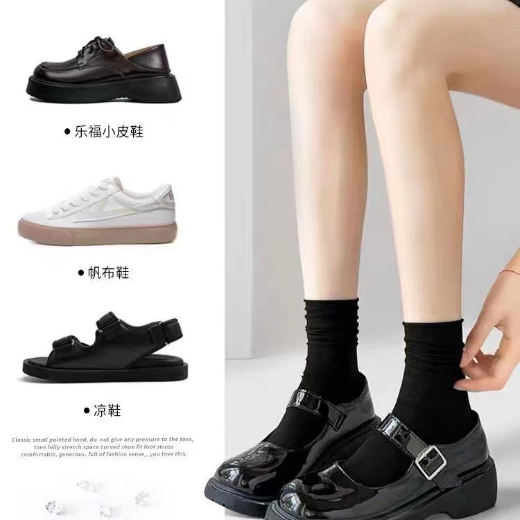 아이스 아이스 양말 검은 양말 작은 가죽 신발과 여성의 여름 얇은 여름 나는 얼음 실크 여름 튜브 샌들 스타킹을 쌓다