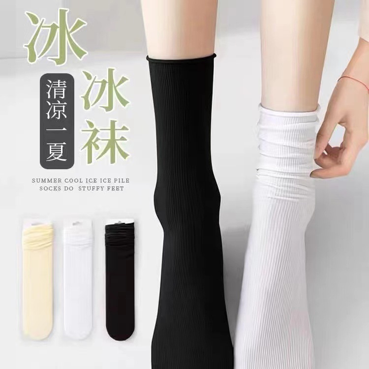 아이스 아이스 양말 검은 양말 작은 가죽 신발과 여성의 여름 얇은 여름 나는 얼음 실크 여름 튜브 샌들 스타킹을 쌓다스토어 가기