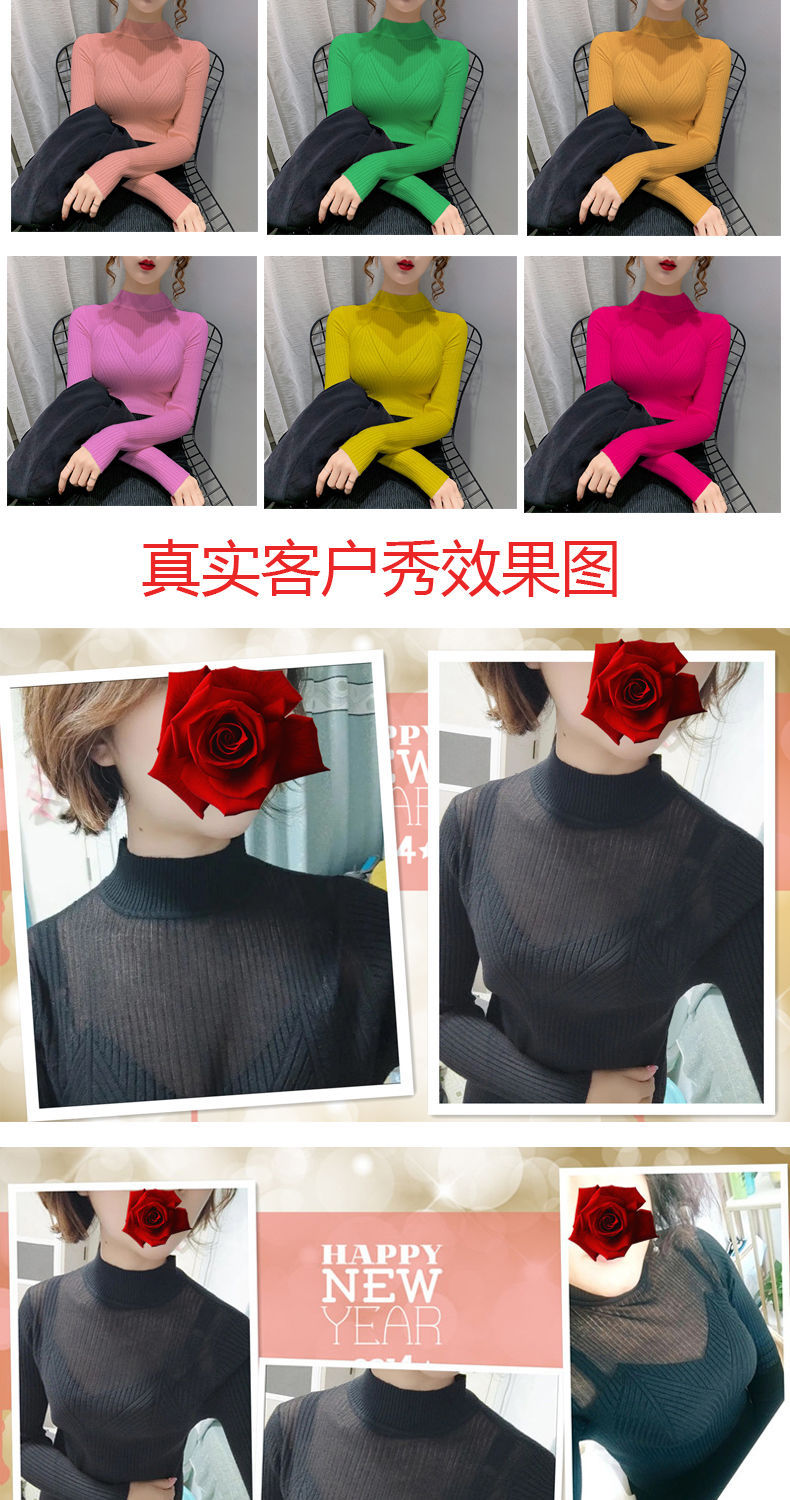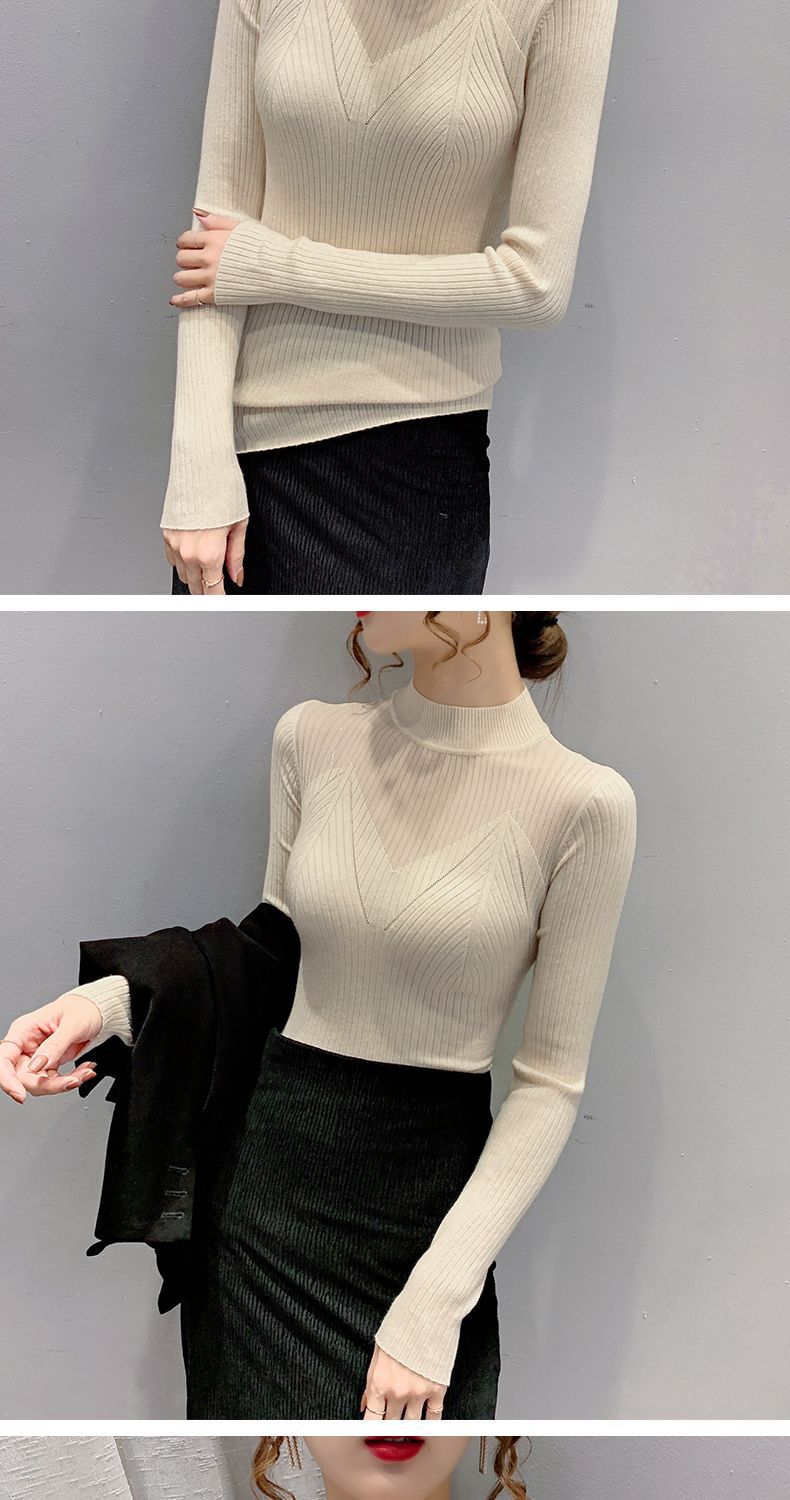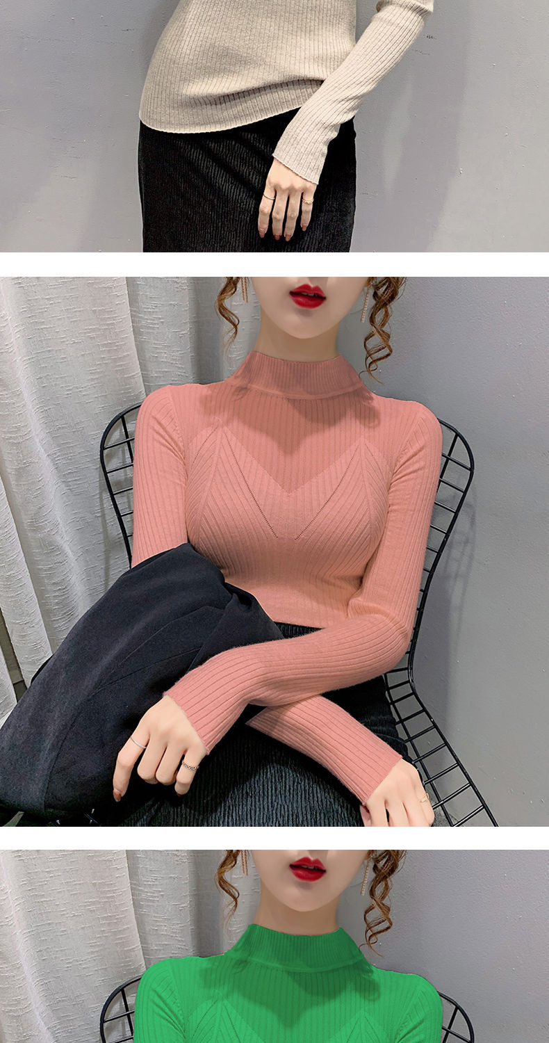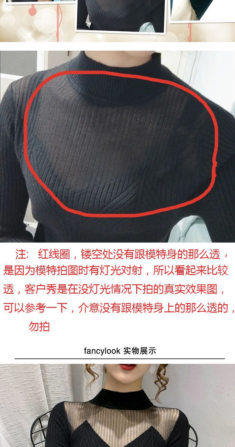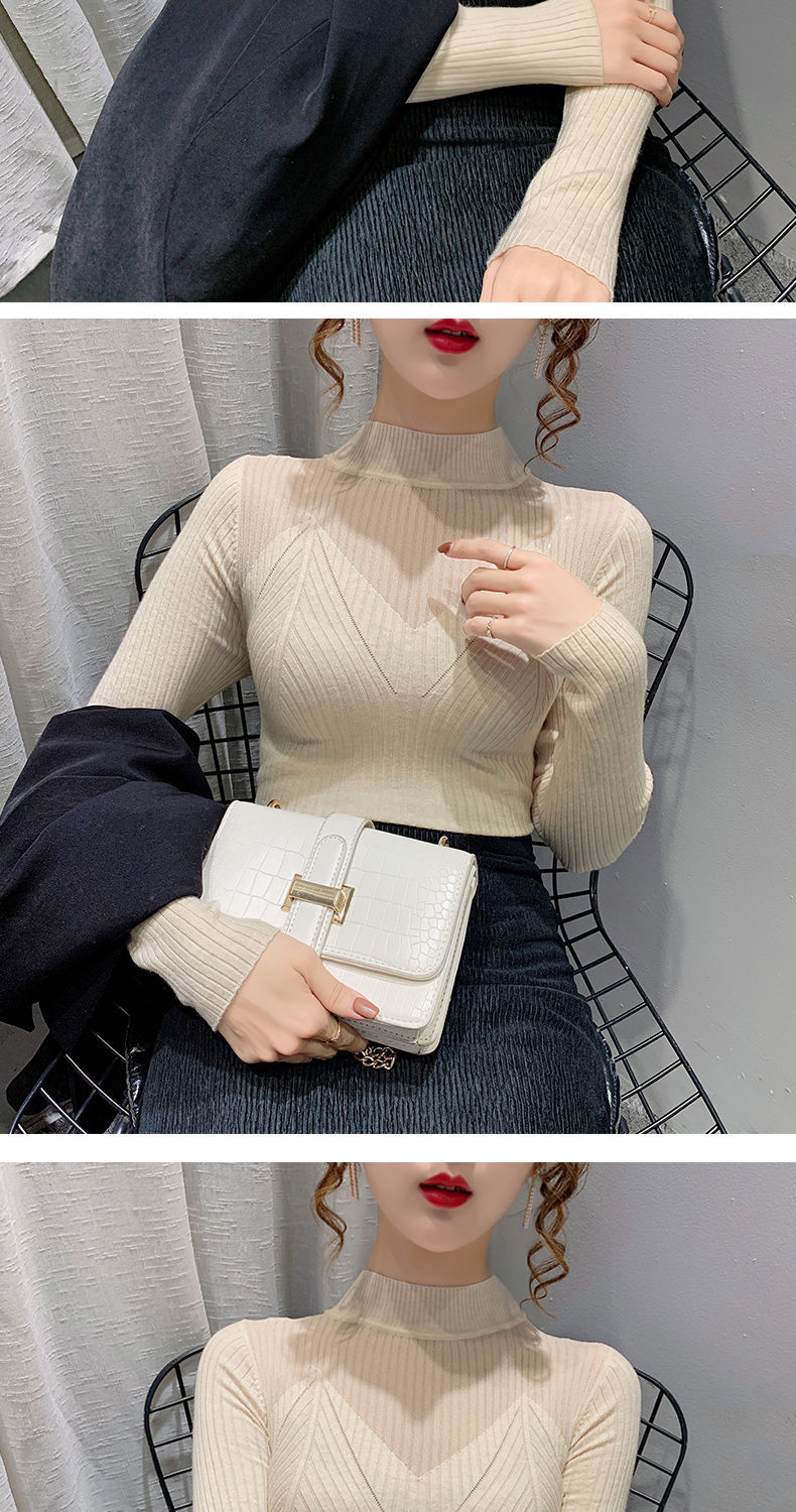 하프 터틀넥 메쉬 할로우 스웨터 여성의 가을 및 겨울 새로운 한국 스타일 조각 레이스 내부 니트 베이스 셔츠 여성용 탑스토어 가기