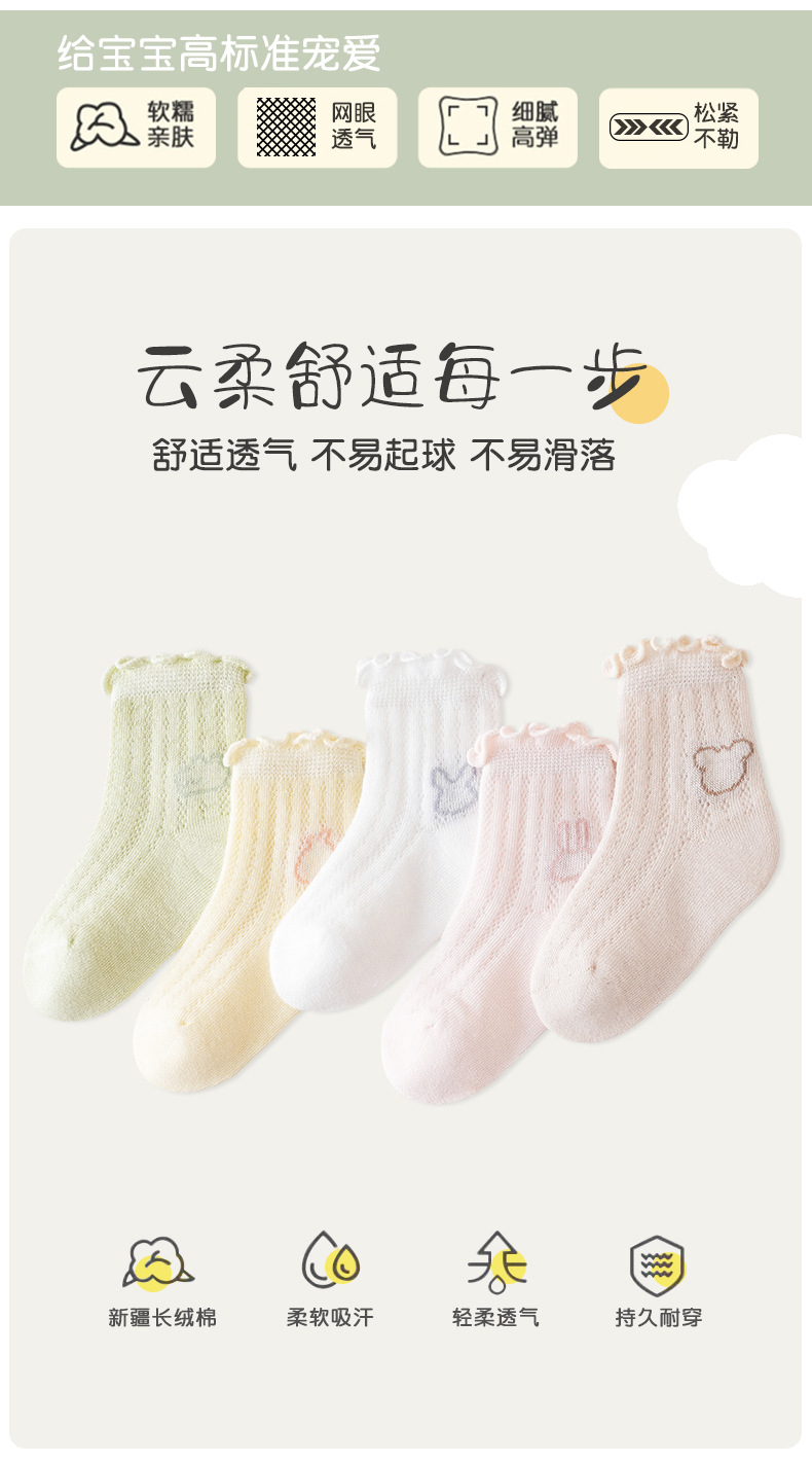 여름 얇은 뼈없는 아기 짧은 양말 아기 메쉬 양말 어린이 면 양말 통기성 편안한 다리 귀여운
