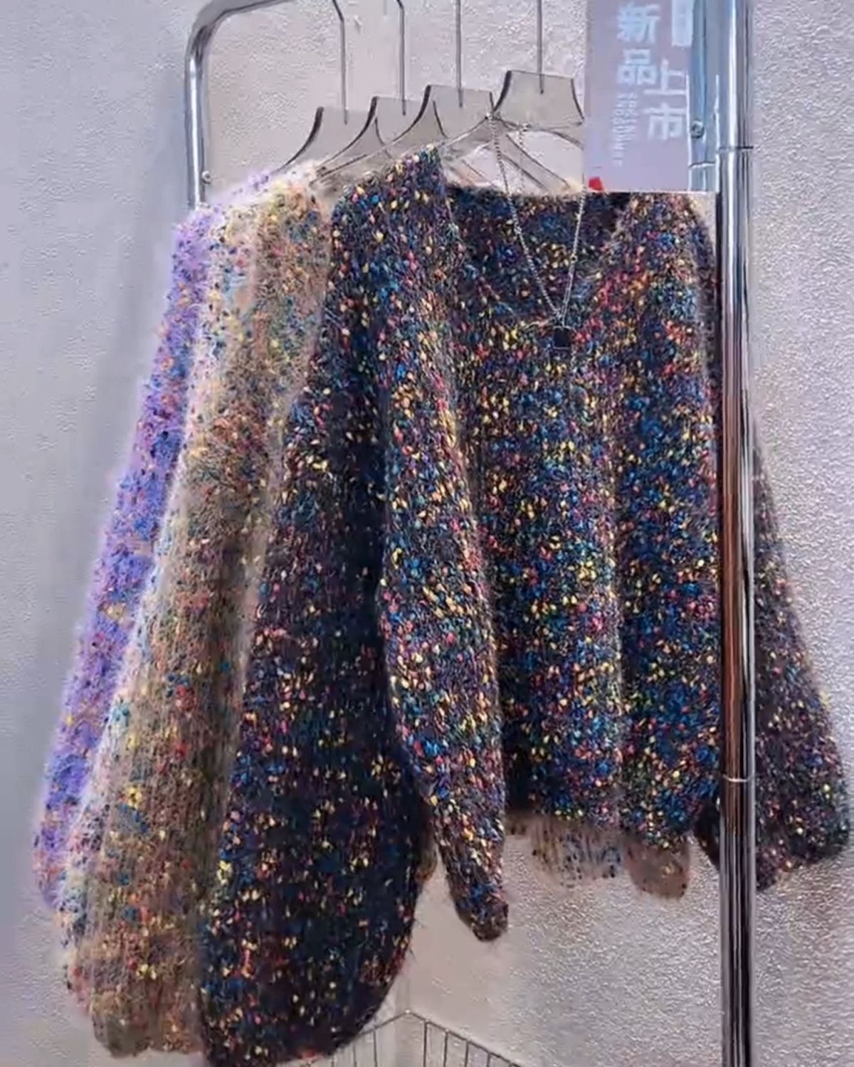 게으른 스타일 고급 컬러 도트 스웨터 여성의 봄과 가을 V-Neck 풀오버 짧은 두꺼운 탑 니트 스웨터스토어 가기
