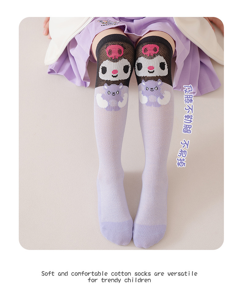 산리오 소녀 송아지 양말 여름 메쉬 통기성 달콤한 만화 여성의 무릎 위 스타킹 한국식 어린이 양말